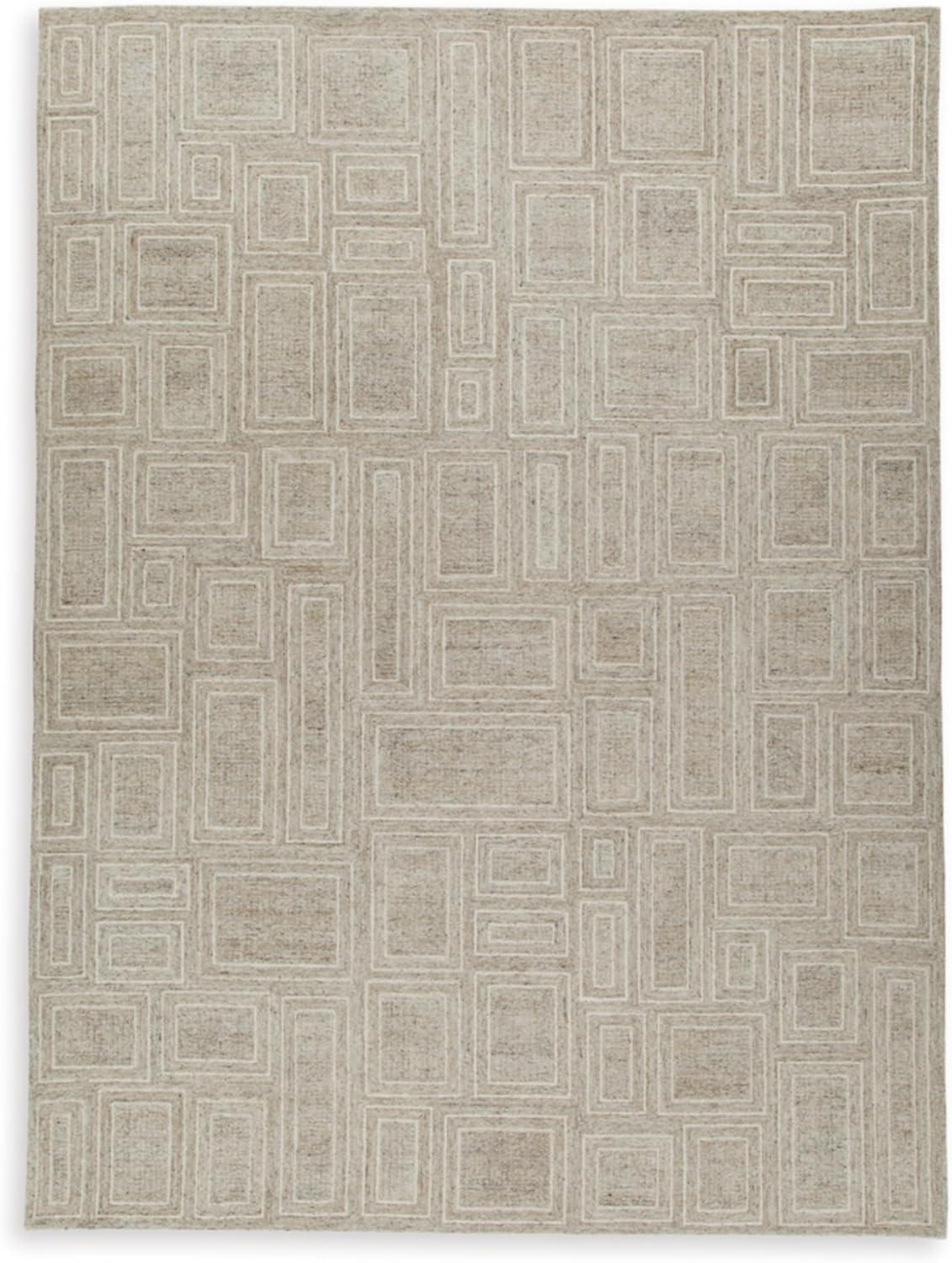 We appreciate how this rug effortlessly blends style and comfort, making it a versatile centerpiece for various interiors.Its geometric design, accented by soft neutral tones of gray and light brown, adds visual interest without overwhelming the room. Whether placed in a relaxed family space or a sleek contemporary loft, the pattern strikes the perfect balance between modern flair and understated elegance.Plus, the hand-tufted plush surface offers remarkable softness underfoot, transforming any area into a cozy retreat.