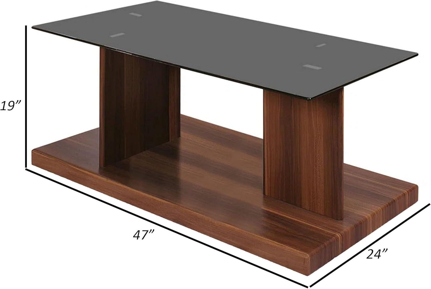 Combining sleek sophistication with practical design, this coffee table stands out for those seeking a centerpiece that balances modern elegance with everyday functionality. the smoked black tempered glass top pairs beautifully with the warm dark walnut finish, making it an ideal choice for living spaces aiming for a refined yet inviting atmosphere. Its sturdy pedestal base and open bottom shelf provide not only stability but also flexible storage or display options, keeping your living area neat without sacrificing style.