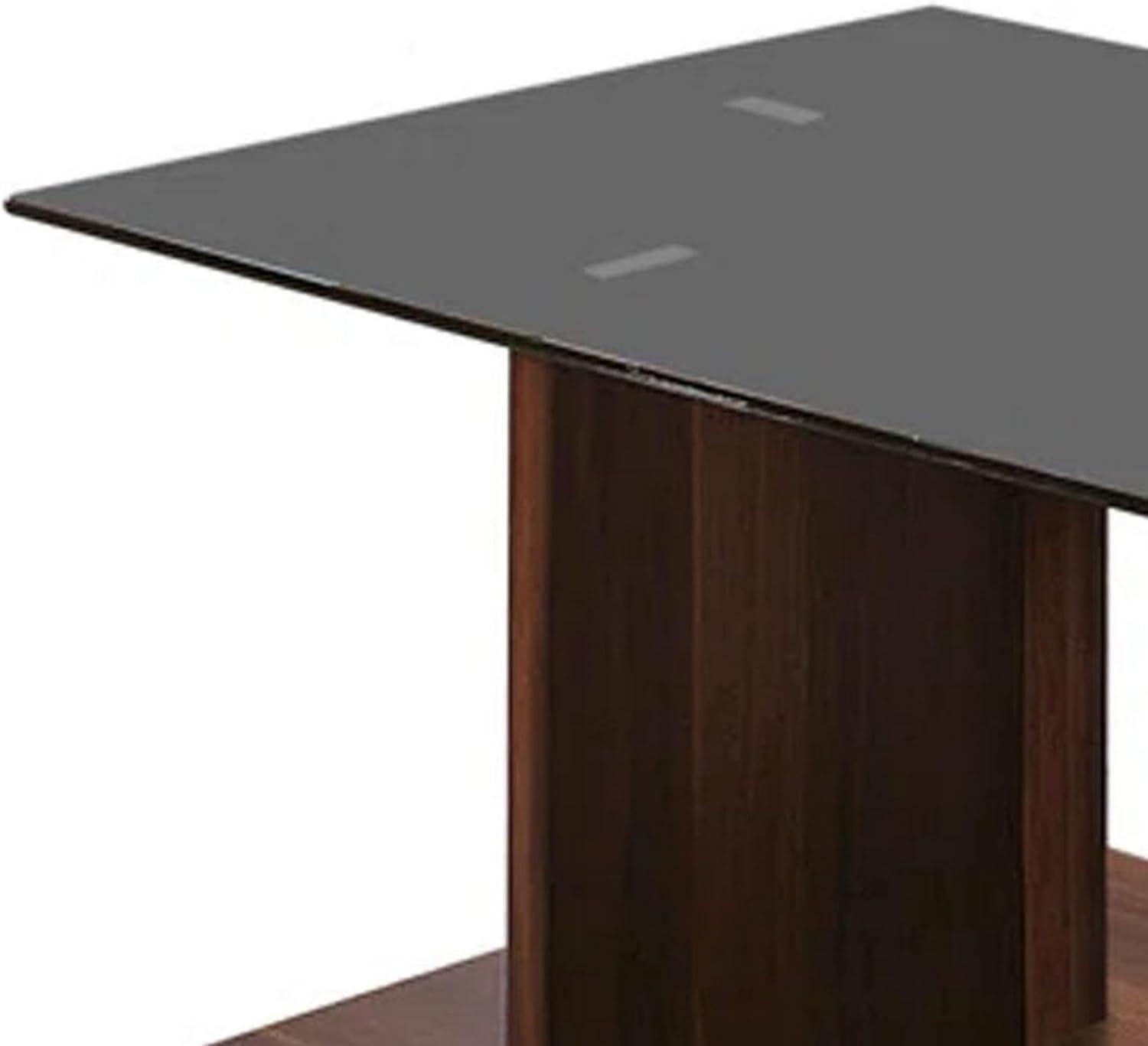 The smoked black tempered glass top instantly elevates the aesthetic of the table, combining modern sophistication with subtle intrigue. Its dark tint doesn’t just look stylish, but also cleverly conceals fingerprints and minor smudges better than clear glass, making maintenance a bit easier in a busy living room.the tempered glass is durable and resistant to scratches and heat, which adds a layer of longevity that we appreciate in everyday furniture.What really stands out is how the glass top beautifully complements the rich dark walnut finish of the wood pedestal base, creating a balanced mix of warmth and modern edge without overwhelming the space.