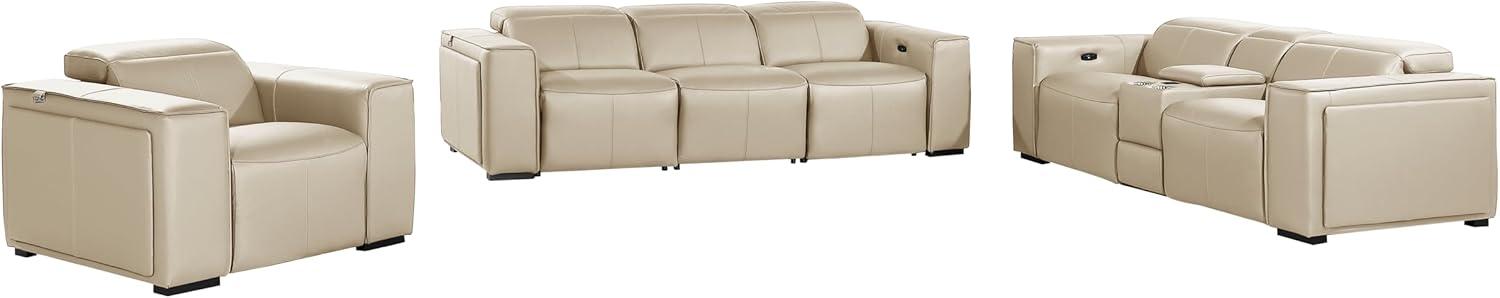 This luxurious 3-piece set offers a complex blend of elegance and functionality, perfect for transforming any living room into a high-end retreat. Upholstered in soft yet durable top-grain Italian leather, each piece-sofa, console loveseat, and chair-boasts a rich beige hue that complements a wide range of decor styles. The sturdy Brazilian wood frame ensures long-lasting durability, while six advanced power recliners with adjustable headrests provide personalized comfort for every user. Weather you’re unwinding after a long day or hosting friends for movie night, this set’s ergonomic, lumbar-supporting design helps maintain comfort for extended periods.