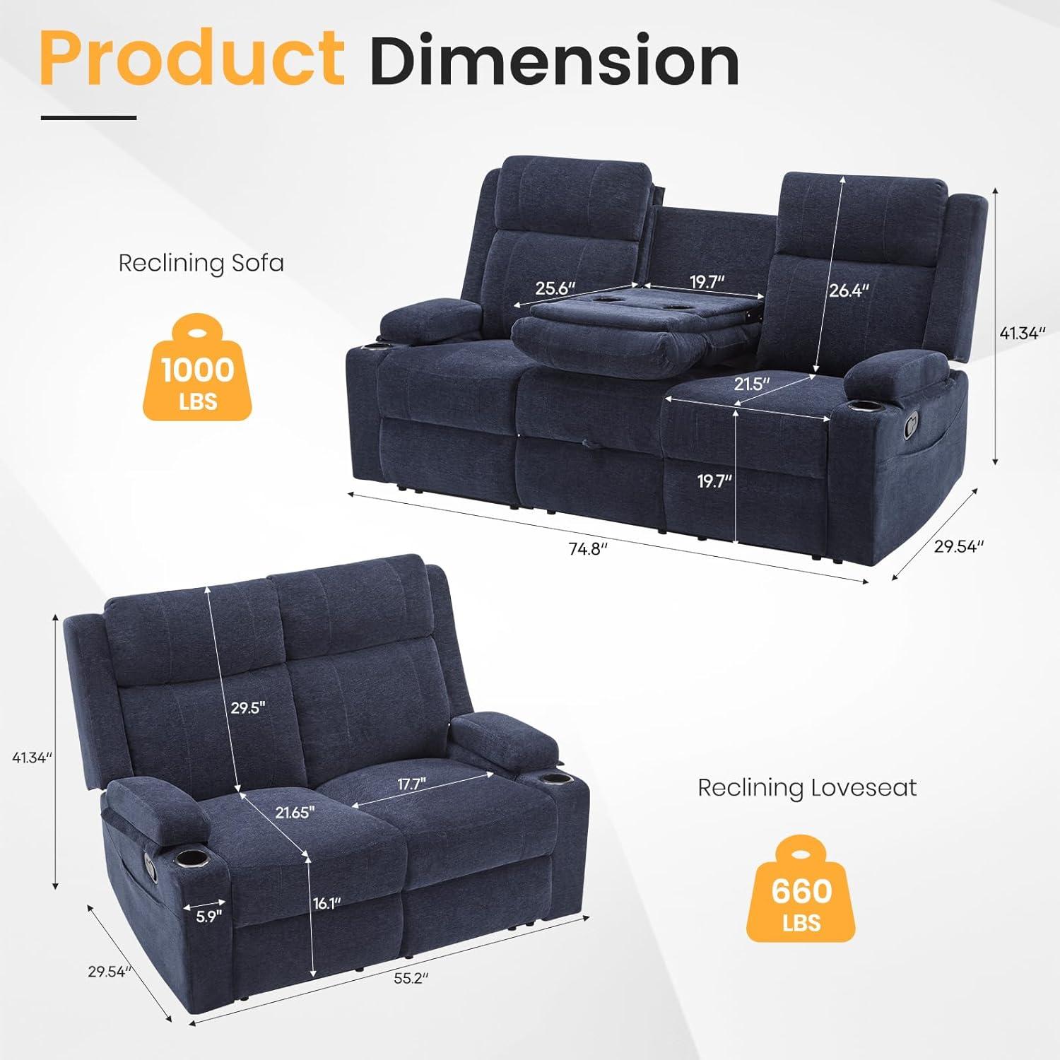 Upon unboxing, the⁤ combination of the 3-seat ⁤and loveseat recliners instantly stood⁢ out with its elegant blue chenille fabric, ​lending a soft​ yet durable touch that felt inviting⁢ right away. The manual reclining feature is intuitive-simply pull the lever to extend the footrest and⁤ lean back for instant relaxation. We⁣ appreciated the thoughtful addition of storage pockets on each ​armrest, perfect for keeping remotes, magazines, or small devices within easy reach. The solid metal frame beneath ensures robust support, and with each seat rated to hold up to 330 pounds, the set feels exceptionally ⁤sturdy and well-built.