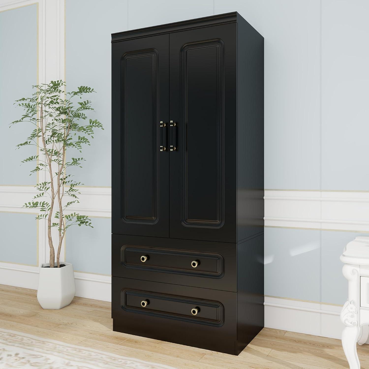 Its sleek black finish and modern silhouette make this wardrobe remarkably versatile, allowing it to complement a wide range of interior designs. From minimalist bedrooms to contemporary living rooms, it acts as both a functional storage solution and an elegant accent piece. We found that its clean lines and neutral color blend effortlessly with bold or muted decor palettes alike. Whether paired with warm woods, cool metals, or vibrant textiles, it anchors the space without overwhelming it. The ample storage options-including two large doors, hanging rods, and drawers-fit seamlessly into rooms where both style and practicality are needed.