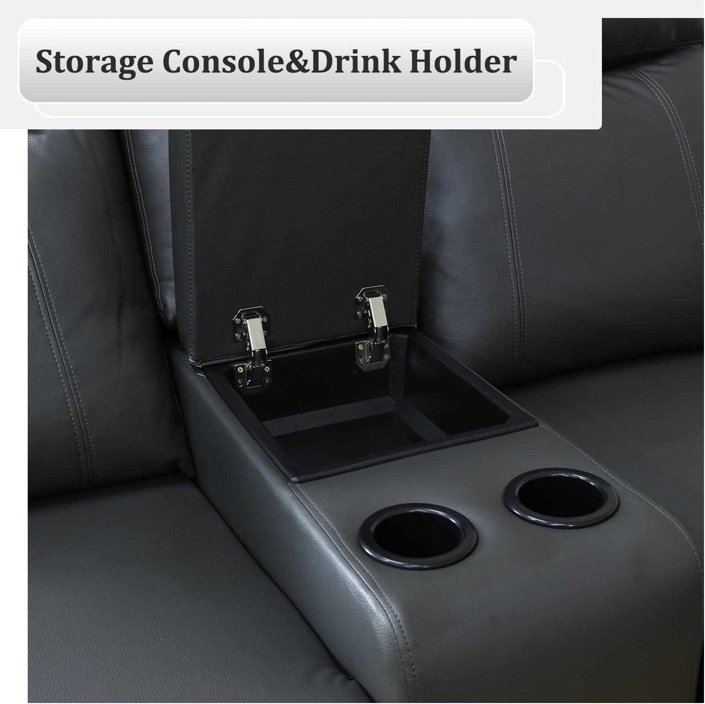 The mid console design on this loveseat truly transforms our living room experience by adding both style and unmatched convenience. Featuring a built-in dropdown table,it serves as the perfect spot to rest snacks,books,or devices without interrupting relaxation time. The surface is crafted with the same high-quality air leather upholstery found throughout the set,blending seamlessly with the overall aesthetic while providing a durable,easy-to-clean area. Plus, the elegantly stitched detail subtly enhances the refined vibe without overwhelming the design.
