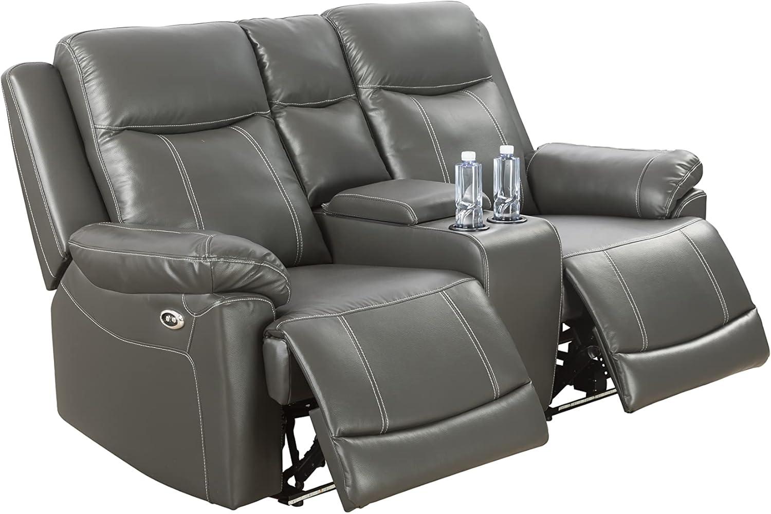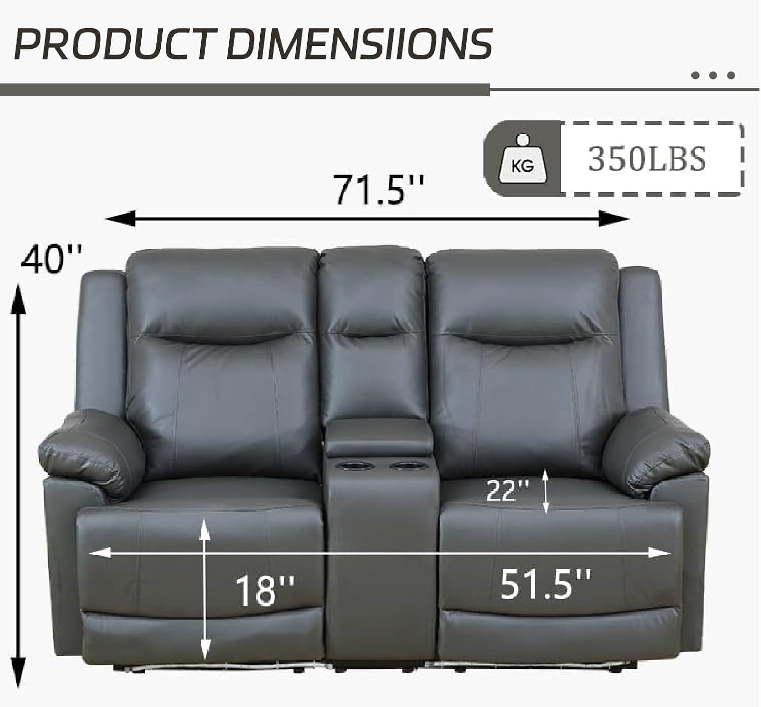 This set excels in versatility, blending smoothly into both modern and traditional living spaces. Its dark grey air leather upholstery and refined stitched details create a neutral yet sophisticated palette that pairs beautifully with monochromatic décor or can soften a contemporary room with a hint of warmth. We recommend situating the loveseat where its USB charging ports and power recliner functions are most accessible-such as, near a media center or beside a side table, so you can seamlessly integrate entertainment and relaxation. its compact dimensions allow it to fit comfortably in mid-sized living rooms, dens, or entertainment areas without overwhelming the space.