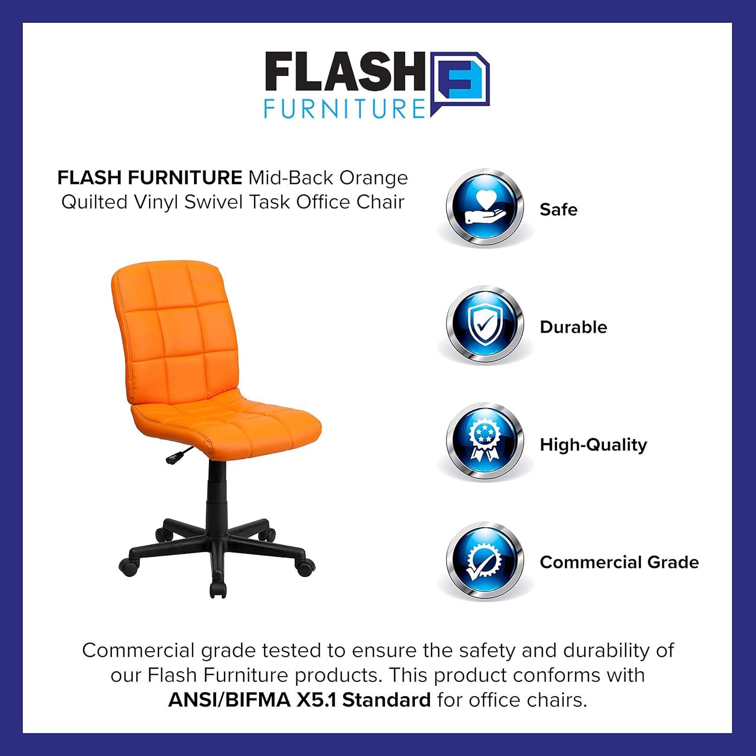 Discover more and make it yours here: Flash Furniture Clayton Mid-Back Orange Quilted Vinyl Swivel Task Office Chair.