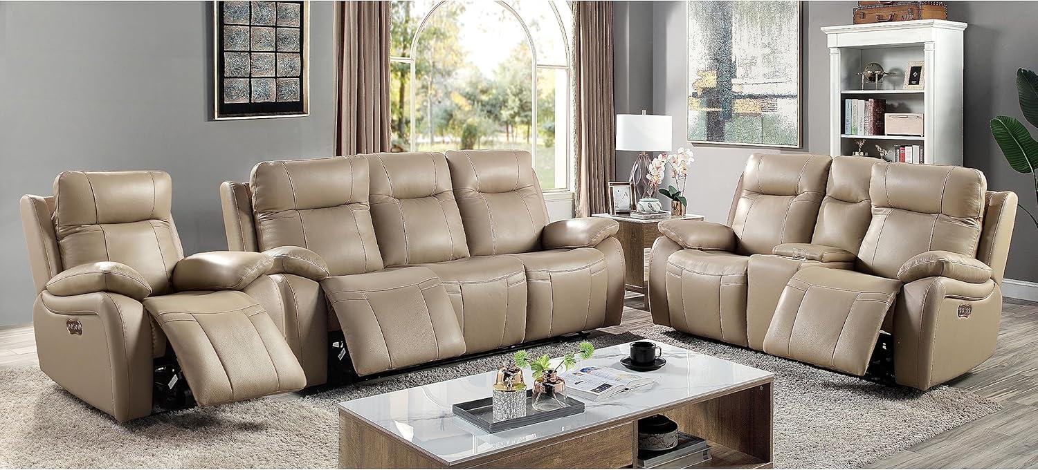 this 3-piece power recliner set brings a harmonious blend of modern ⁣convenience⁣ and timeless style​ to any living area. Upholstered in top grain light brown leather,the collection offers a plush and inviting feel,perfect for relaxing after a long day. Each piece features⁣ power recline mechanisms ⁢and adjustable headrests, allowing us to‌ customize our comfort with ease. The loveseat‍ includes a thoughtfully designed center console equipped with storage space and stainless steel cupholders-ideal for keeping essentials close during ‍movie nights or casual gatherings.