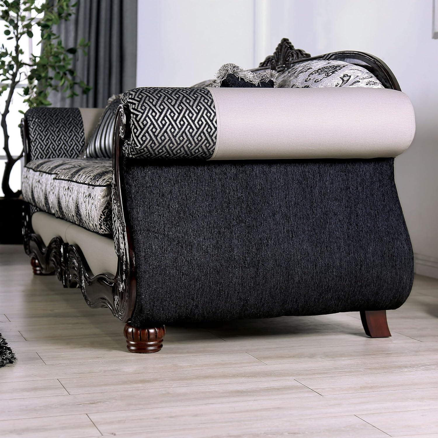the Furniture of America Ember Traditional 2-Piece Sofa Set offers a perfect blend of classic design and modern comfort. Its rich black and gray tones, paired with the intricate faux carved wood details and plush chenille fabric, create a timeless look that can elevate any living room, home office, or apartment space. Whether you’re curling up with a book or entertaining guests,this sofa set provides both style and cozy functionality. We appreciate how the reversible seat cushions and sturdy wooden frame bring versatility and durability to the table, making it a thoughtful choice for those seeking both elegance and everyday comfort.