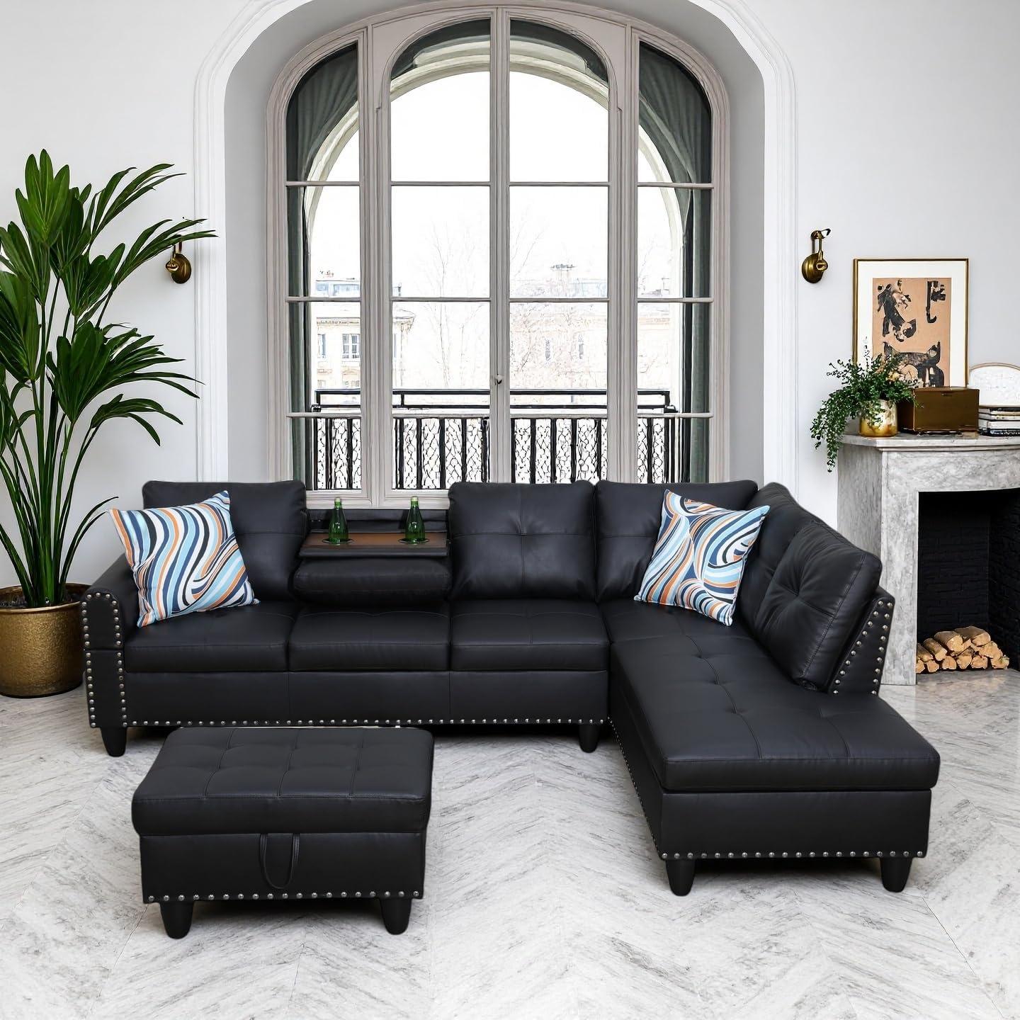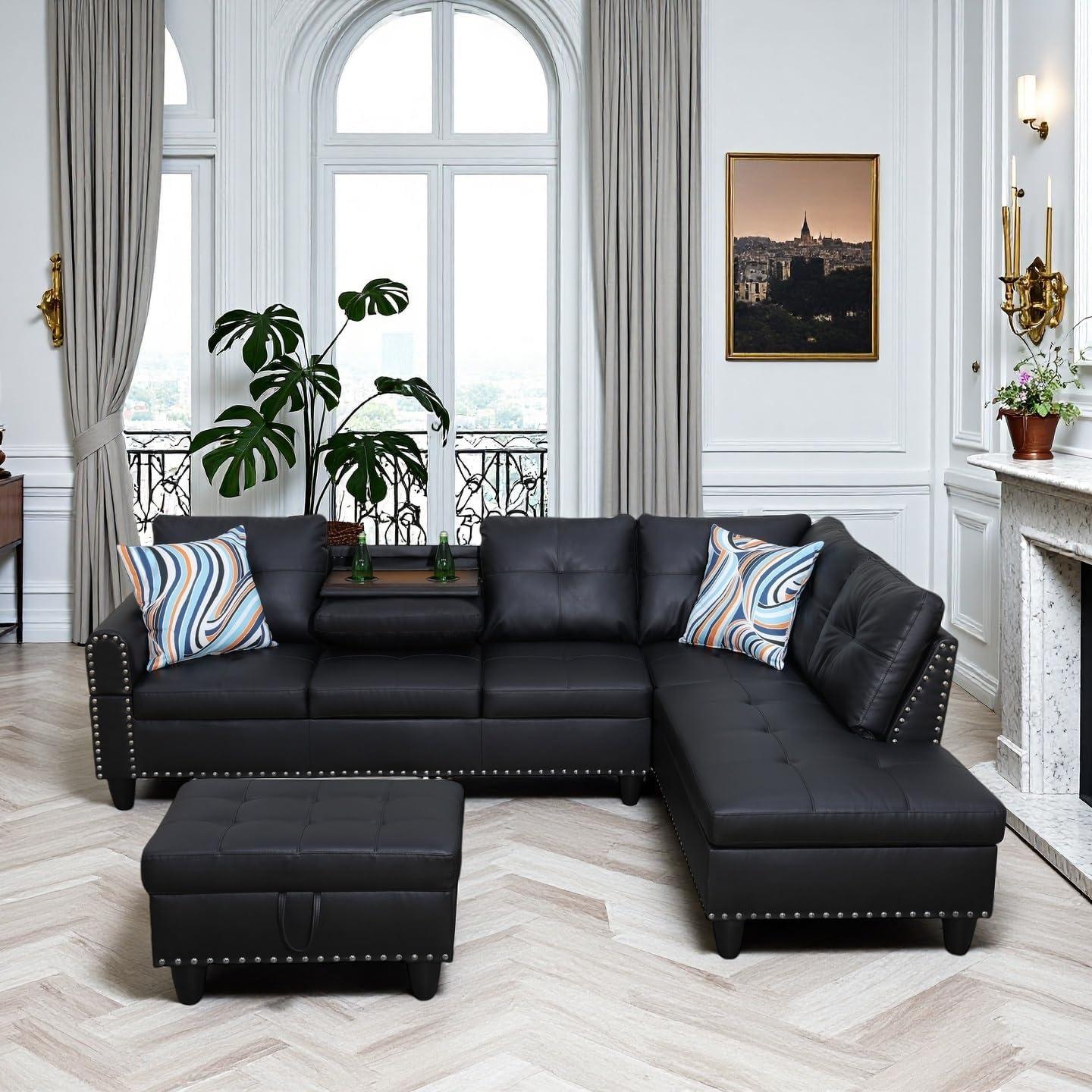 After spending considerable time with this sectional, we appreciate its blend of style and functionality. The modular design offers remarkable flexibility, allowing us to customize the seating arrangement to fit different room layouts effortlessly. The integrated cup holders add a touch of convenience, making it an ideal spot for entertaining or relaxing with a beverage close at hand. we also found the sturdy wood frame combined with reinforced metal hardware gives the couch a durable foundation that promises longevity. Plus, the breathable faux leather upholstery not only resists discoloration but also provides a comfortable, ergonomic experience thanks to its well-thought-out lumbar support.