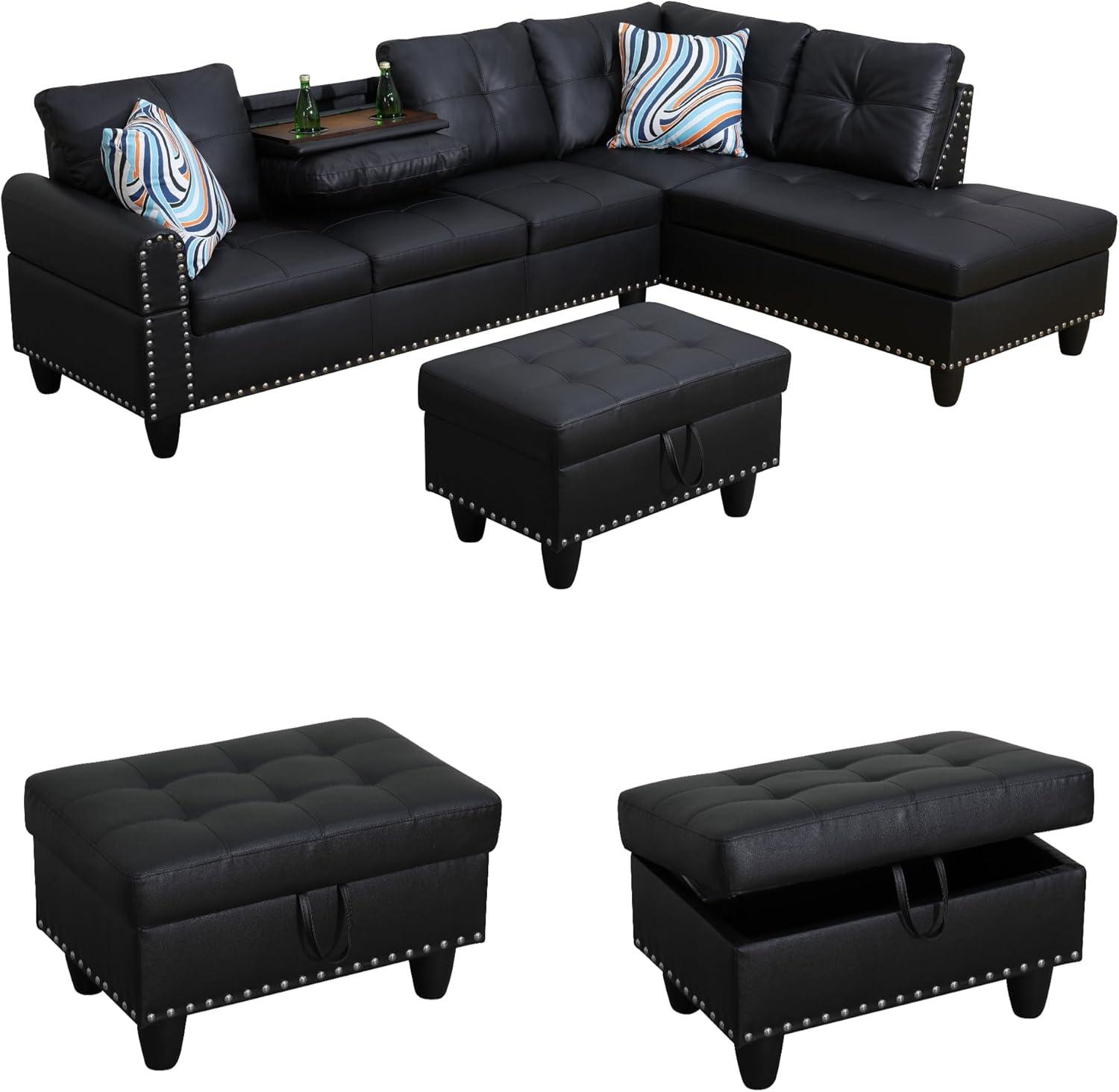 The deep black finish offers a strikingly modern look that fits effortlessly into a range of living room décors. It’s a color that radiates sophistication, yet remains understated, giving the entire sectional a timeless appeal. Beyond aesthetics, the faux leather upholstery is not only visually sleek but also highly practical-it resists discoloration and is easy to clean, making it ideal for daily use. The subtle matte sheen helps maintain a polished look without attracting excessive glare or fingerprints, striking the perfect balance between style and functionality.