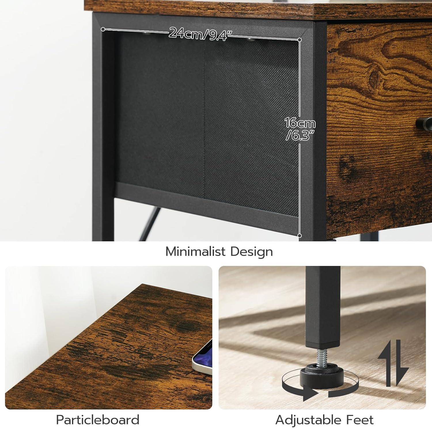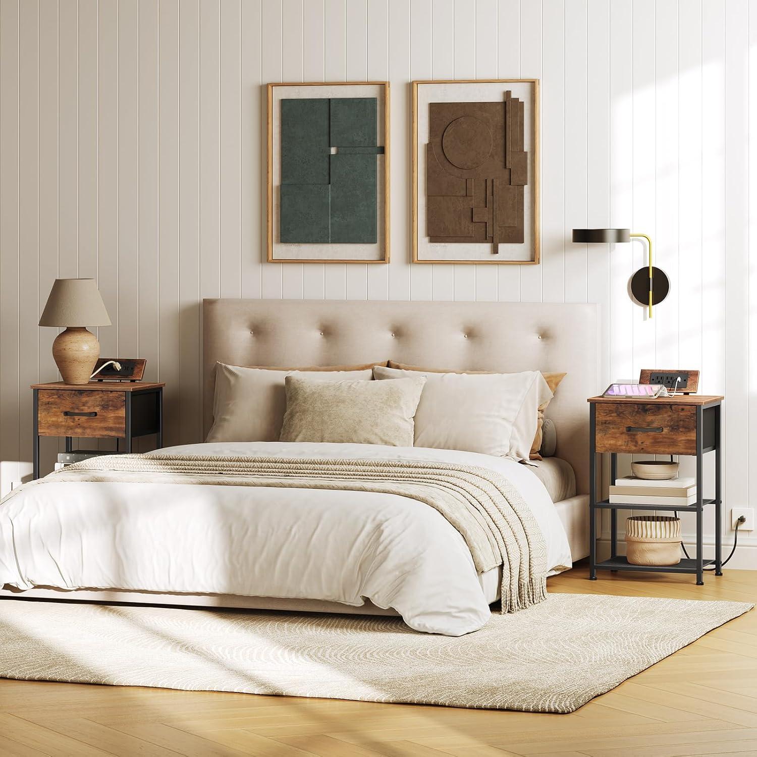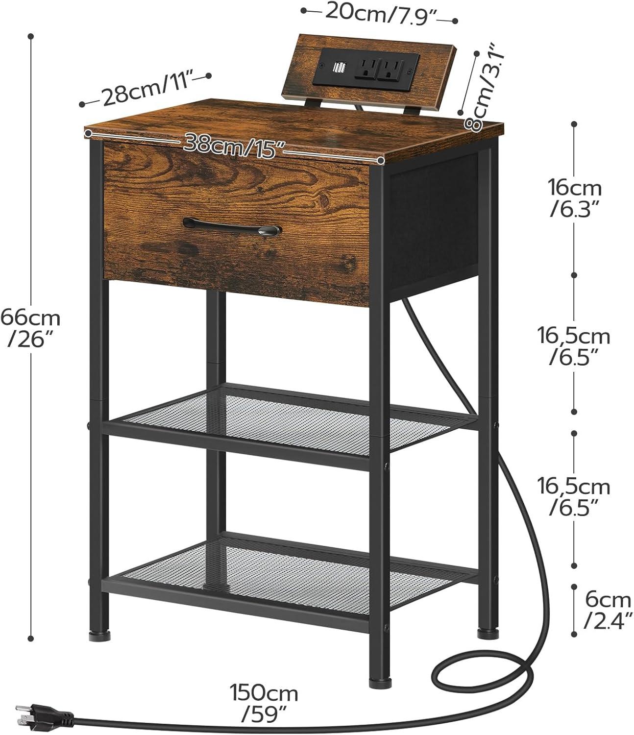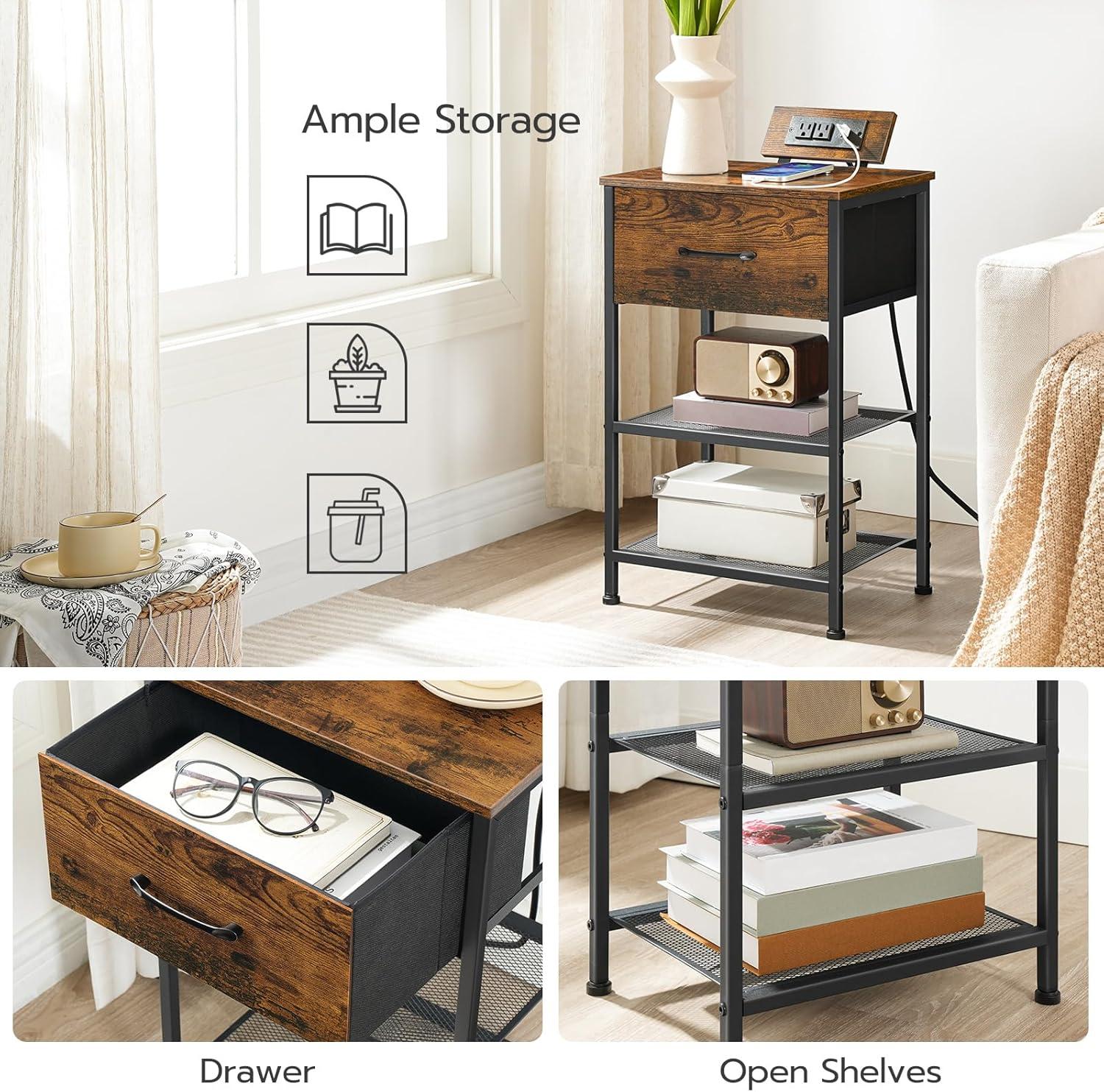 functionality extends beyond just storage. The drawer ​pairs well with the⁤ two open shelves ‍below, creating a two-tier system that lets us organize frequently used items within easy reach. Its fabric construction adds a soft touch that contrasts nicely with⁤ the rustic brown wood and black metal frame, complementing the overall ​minimalist ‍aesthetic. This setup ⁢balances form and function, making it versatile enough for bedrooms or small living areas. Plus, the built-in charging station with USB‌ ports and power outlets ⁣works seamlessly alongside the storage, keeping devices charged without adding bulk.