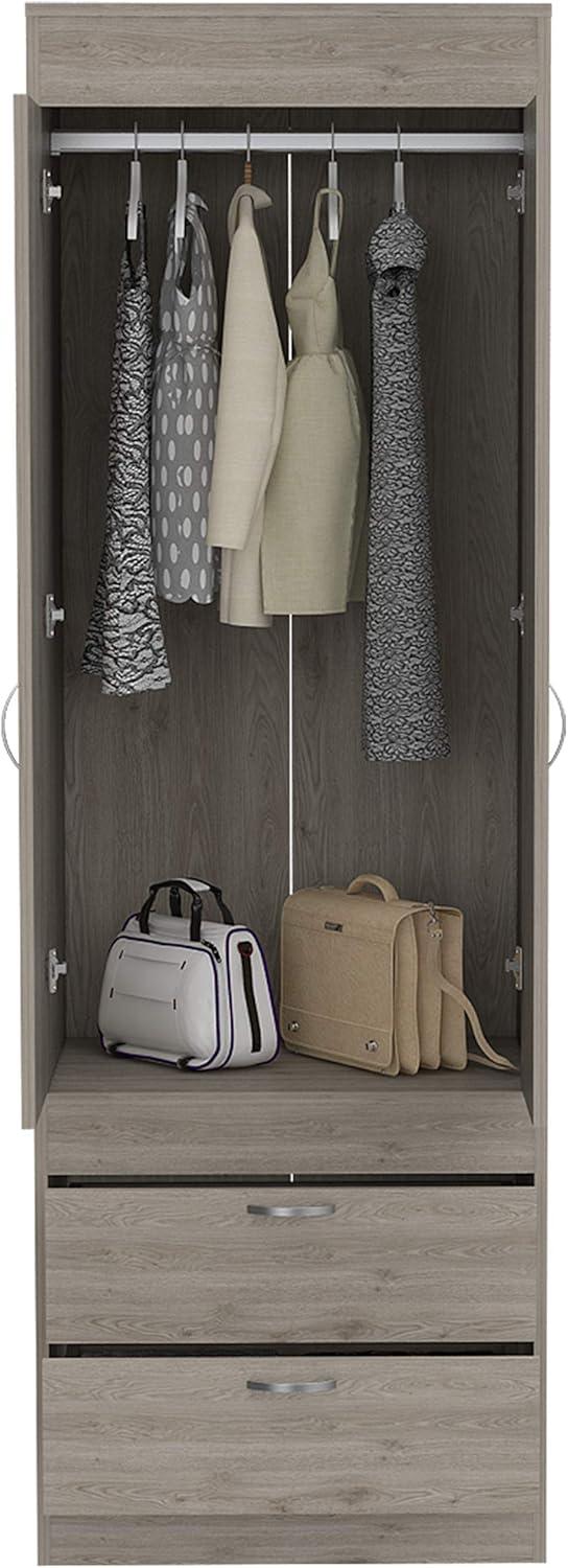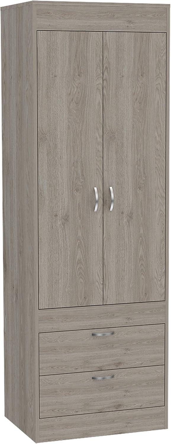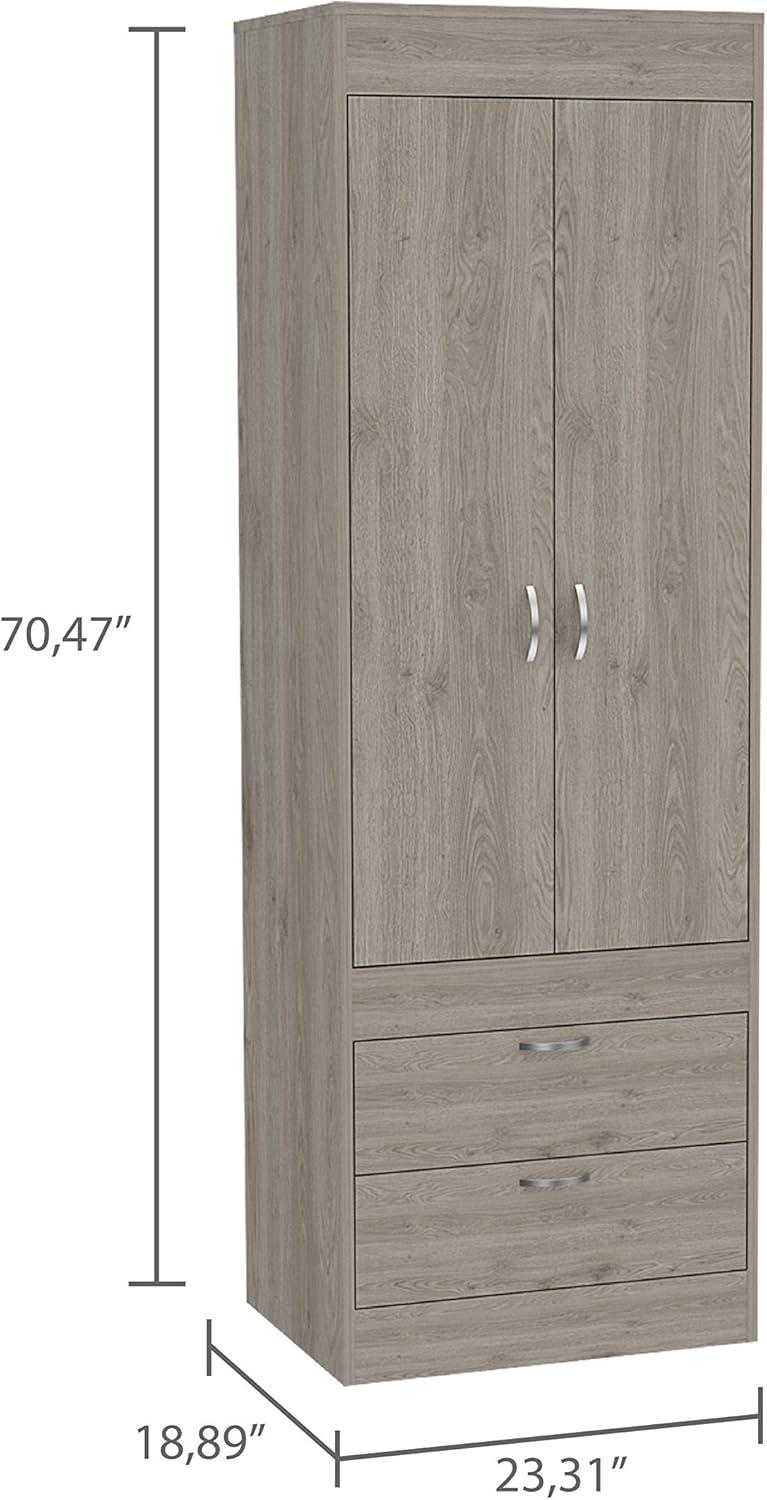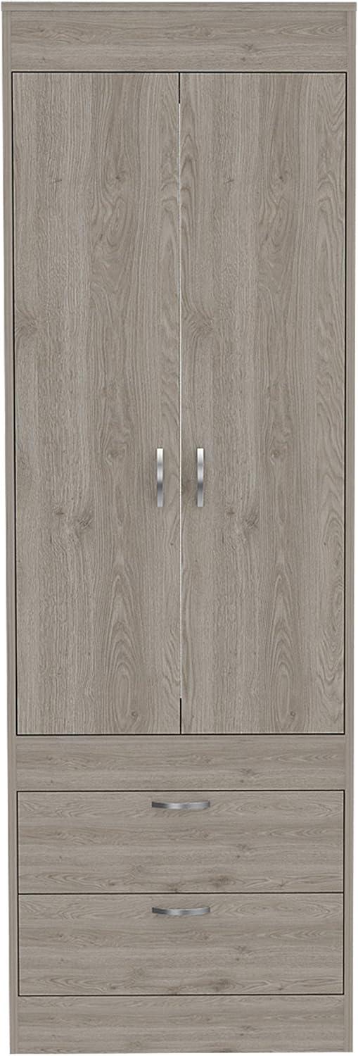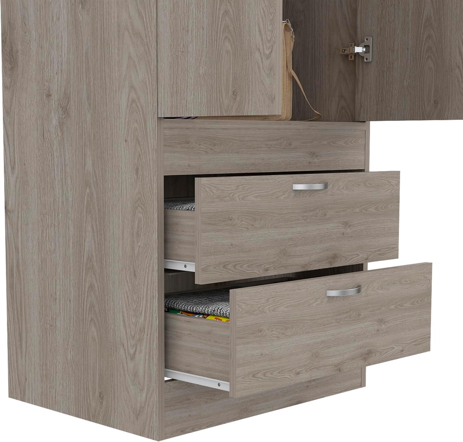 Its sleek light gray finish and clean lines make this piece incredibly versatile, easily blending with both modern and customary décor. For minimalist bedrooms, pairing it with neutral tones and simple bedding lets the armoire’s subtle elegance shine without overwhelming the space. In rooms featuring rustic or farmhouse styles, adding natural wood accents and woven baskets nearby enhances the overall warmth and texture, creating a balanced contrast with the contemporary smooth surface. Meanwhile, the compact dimensions allow it to fit seamlessly in smaller apartments or dorms without sacrificing storage, making it a practical yet stylish addition to any cozy space.