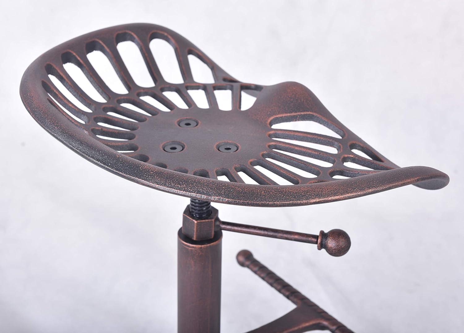 This bar stool brings a striking blend of rustic industrial design and practical functionality to any space it graces. Crafted with a cast iron frame and finished in a warm coppery brown, its vintage tractor seat instantly adds character and authenticity, perfect for farmhouse kitchens or loft-style bars. The distinctive hip curve offers ergonomic comfort, while the 360-degree swivel seat allows effortless movement, making it ideal for long, relaxed gatherings. Its adjustable height mechanism, ranging from 24 to 31 inches, ensures a perfect fit for both counter and pub-height settings, adapting easily to various environments.