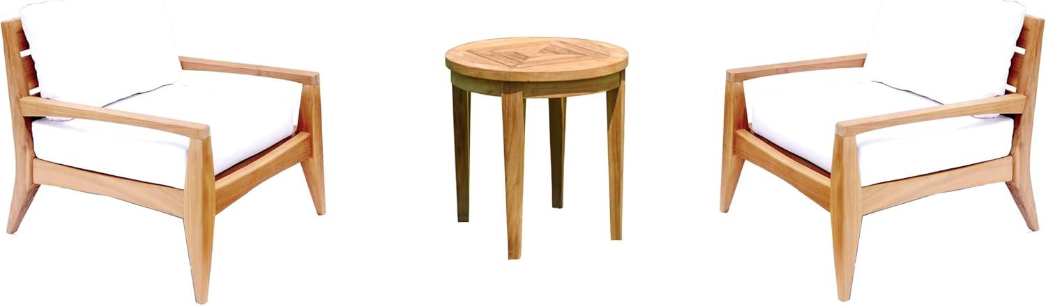 From daily relaxation sessions to hosting casual conversations, this teak lounge chair set proves to be remarkably functional and practical. The solid Indonesian plantation teak ensures long-lasting durability without requiring chemical treatments, allowing us to enjoy the natural beauty and strength of genuine A grade teakwood.The wide seating area of 39.5″ by 35″ and the comfortable 35″ height balance relaxation and support perfectly. While cushions are sold separately, the chairs’ ergonomic design already offers good comfort. The round end table, with its compact 23.5″ diameter and sturdy construction, provides just the right surface for beverages, books, or decorative items, complementing the lounge chairs with convenience.