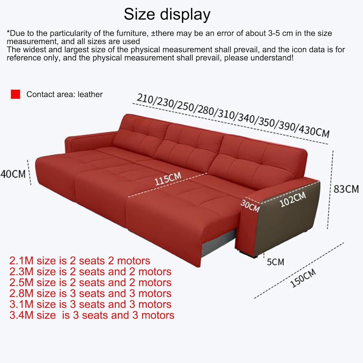Our time with this convertible electric sofa has been genuinely extraordinary, especially considering its multifunctionality and sleek design. The seamless conversion from a three-seater leather sofa to a spacious lounge chair and then to a full bed is executed effortlessly via the remote control. This convenience is a game-changer for anyone managing limited living space, such as apartments or home offices. The sofa’s minimalist straight-row styling blends gracefully with various interior décors without overpowering the room’s aesthetics. what stood out for us was not only the smooth operation of the electric mechanism, built on a sturdy metal frame with silent pulleys, but also the comfort level provided by its deep seat backrest and cushioned pillows.