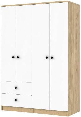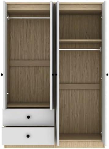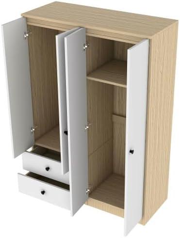 After thoroughly evaluating the wardrobe, we find it an excellent choice for anyone seeking ample and versatile storage with a clean, modern aesthetic. Its well-thought-out design provides multiple compartments-including two clothes rails, a spacious storage section, and two drawers-making organization effortless. The construction from quality pine wood and MDF ensures both durability and ease of maintenance, thanks to its waterproof, scratch-resistant surface.The raised base adds a thoughtful touch by improving stability and moisture resistance, which enhances the wardrobe’s longevity.