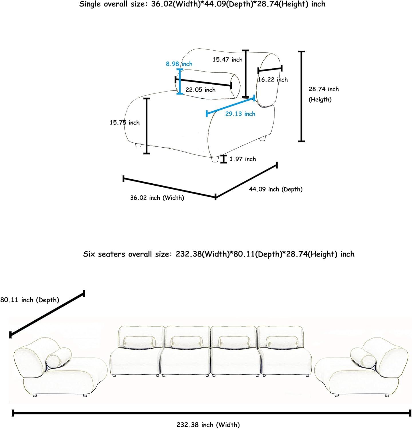 6-Seater 232″ × ‌80″ × 29″ Expansive Living Rooms, Collaborative Offices