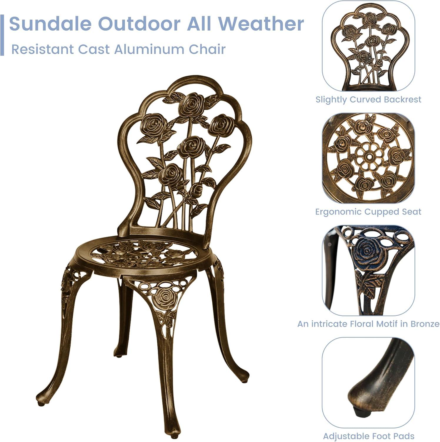 The rose flower pattern delicately crafted into the cast aluminum frame instantly captures our attention, offering a timeless elegance that enhances any outdoor setting. The intricate detailing of the floral motif adds a touch of romantic charm without overwhelming the overall look, perfectly balancing between decorative and functional. the dark bronze finish complements the design beautifully, bringing warmth and sophistication that harmonizes with natural surroundings such as balconies, patios, or cozy garden nooks.