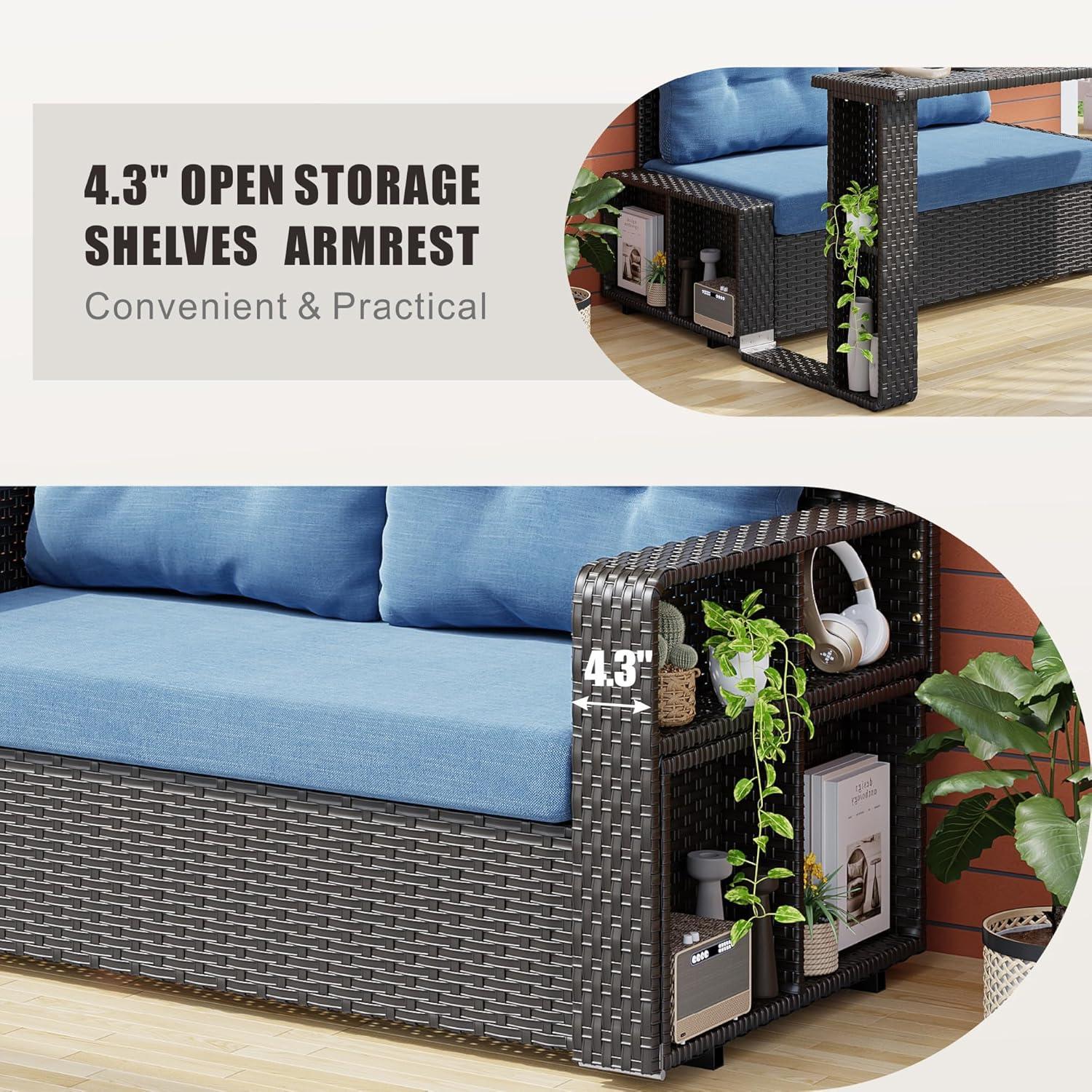 Over weeks of use on patios and balconies, the furniture proved to be highly durable and low-maintenance. The cushions, covered in a water-resistant fabric, held their vibrant blue color and dried quickly when exposed to moisture. One unexpected bonus was the built-in armrest storage, which remained intact and functional despite frequent handling. Here’s a quick overview of what stood out: