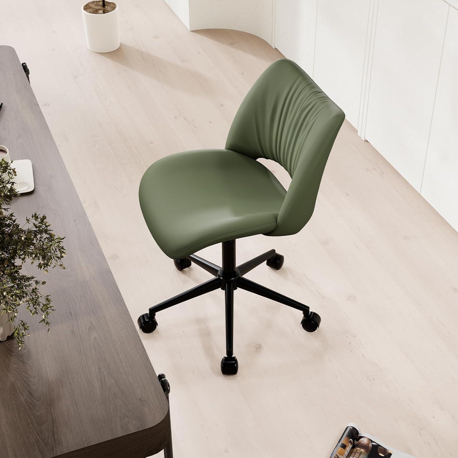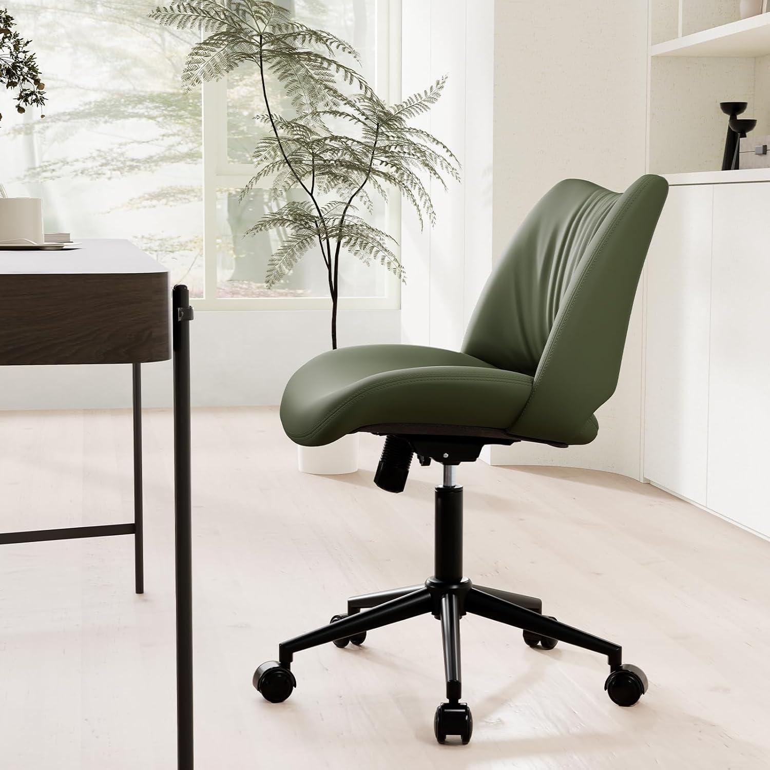 | Elegant olive green faux leather finish that adds style to any workspace | No built-in lumbar support despite its ergonomic claims |