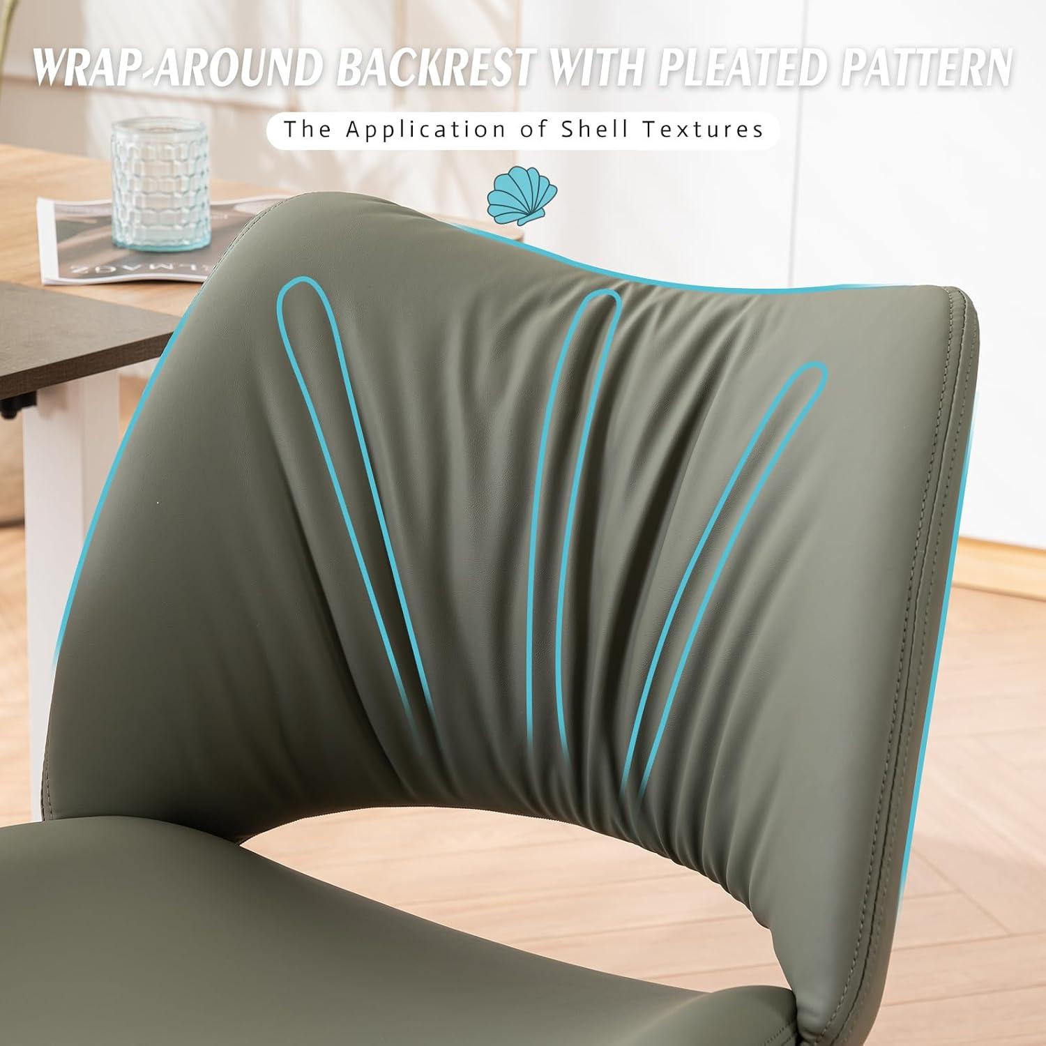 What immediately stood out to us was the chair’s elegant, nature-inspired design that perfectly blends industrial and organic elements. The wrap-around backrest, with its shell-like pleats and delicate curvature, offers not only aesthetic appeal but also ergonomic support that gently embraces the lumbar area and sides of the body. This unique inward tuck design provides a sense of security while ensuring that your posture is well-supported throughout long hours of work or reading. Additionally,the olive green faux leather upholstery caught our eyes with its rich,soothing color that adds a fresh yet sophisticated touch to any workspace.