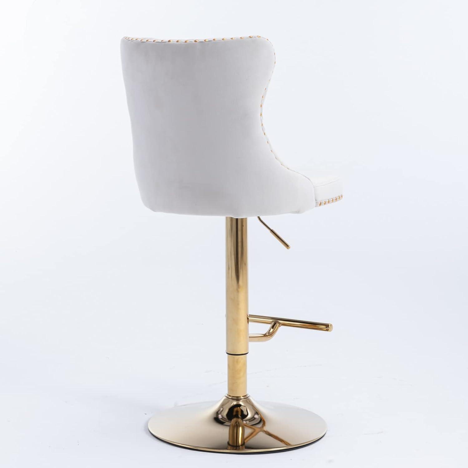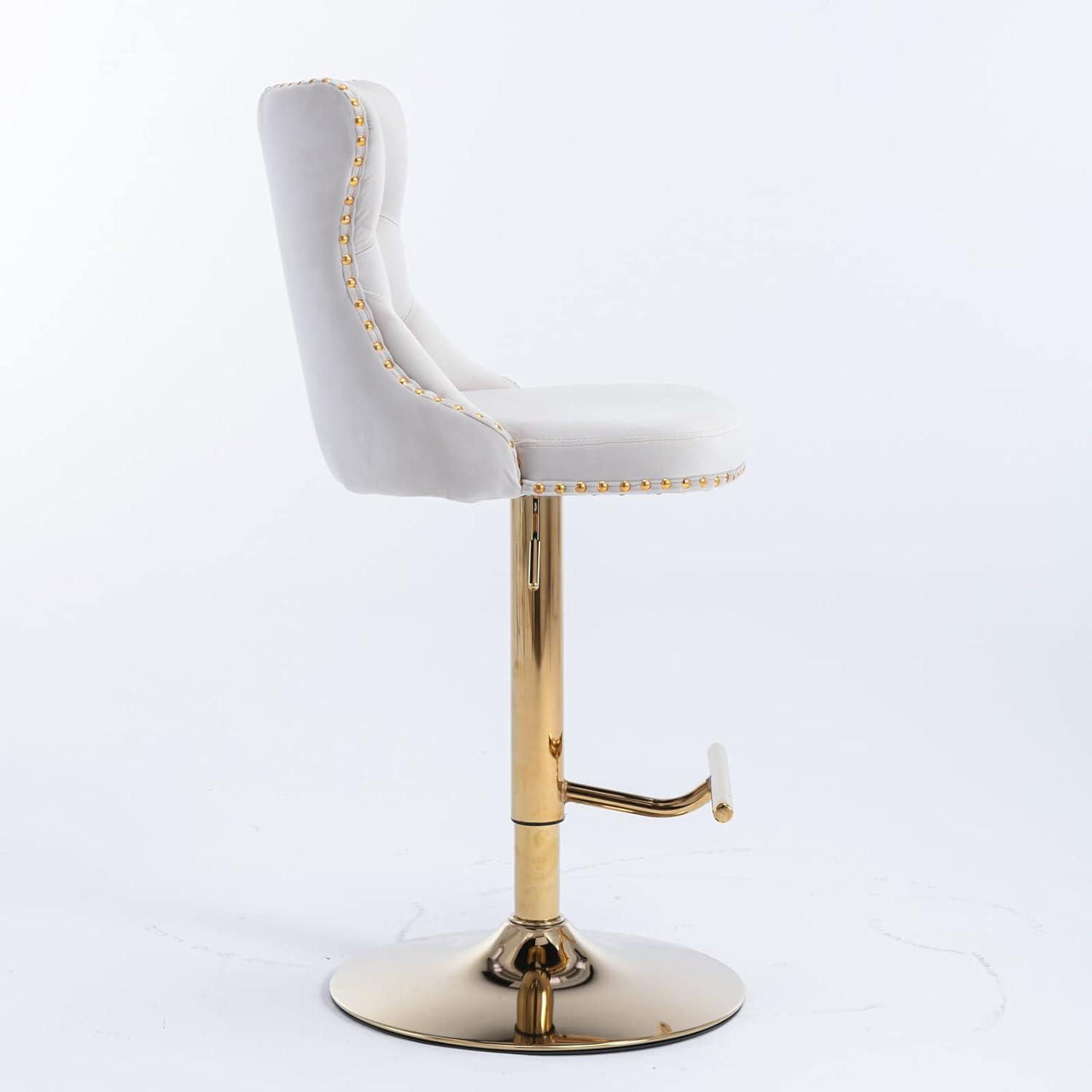 We were immediately impressed by the sleek and modern silhouette that these stools bring into any space. The high-back design offers ergonomic support, perfect for longer conversations or casual dining. Upholstered in sumptuous beige velvet, the fabric exudes a soft, plush feel that balances luxury with everyday practicality. the tasteful tufting and subtle nailhead accents elevate the look, adding refined details without overwhelming a room’s decor.Paired with the sturdy gold metal base, the stools radiate a contemporary charm that complements a wide variety of interior styles-from minimalist kitchens to chic home bars.