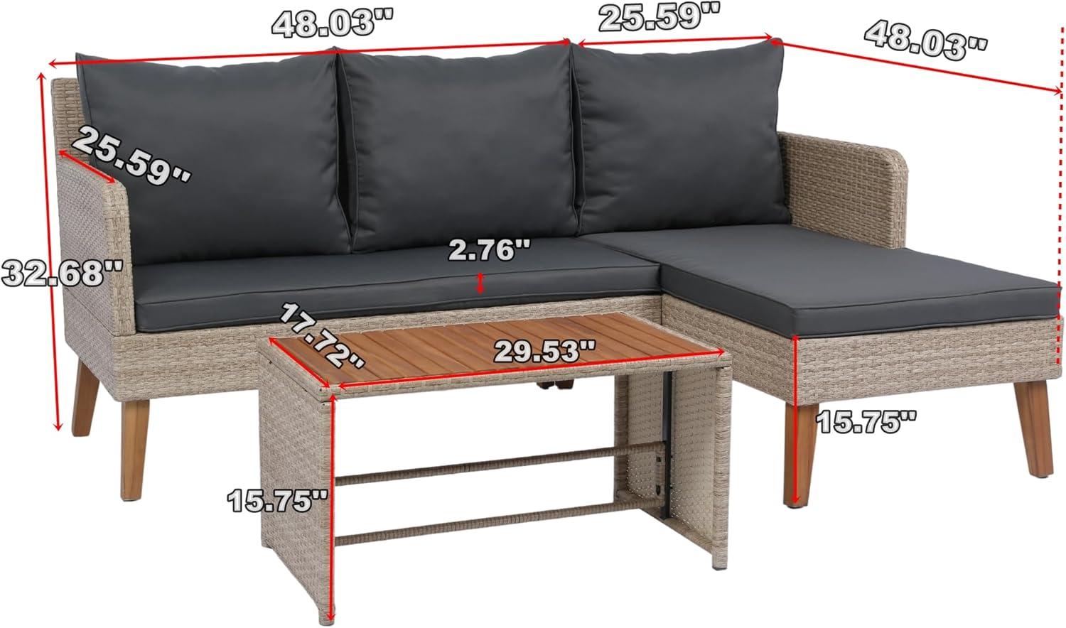 From the moment we unpacked this outdoor sectional, it was clear that quality was a top priority. The hand-woven wicker in a natural yellow tone pairs beautifully with the dark gray cushions, creating a warm yet modern aesthetic that instantly brightened our patio space. Each piece felt solid, thanks to the powder-coated steel frame that promises rust resistance, while the acacia wood tabletop adds a refined natural touch and a pleasantly smooth feel. Setting it up was straightforward with clear instructions and all hardware included, so we had our new conversation area ready in no time.