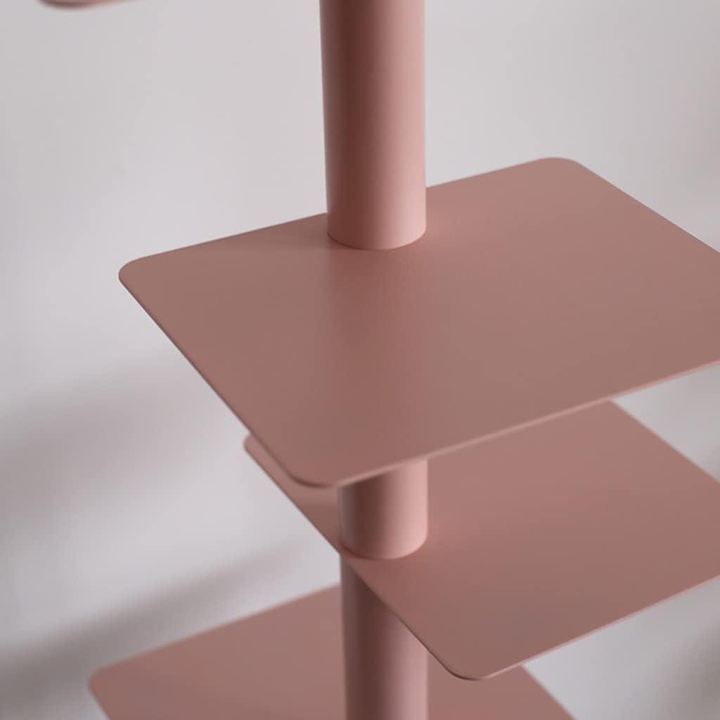 Embracing a modern, open bookshelf design has truly transformed the way we style our living areas. This rotating, multi-layer metal bookcase with its sleek and airy structure brings a refreshing, cozy ambiance without overwhelming the space. The soft pink finish adds a subtle pop of color that effortlessly brightens any room, from the living room to a home office or even the bathroom. Its vertical design maximizes storage while maintaining visual lightness, making it an ideal choice for smaller spaces or corners where floor space is limited but style is not compromised. The multiple tiers and compartments allow us to showcase our books, plants, and decorative items in an organized yet dynamic manner, highlighting each piece beautifully.