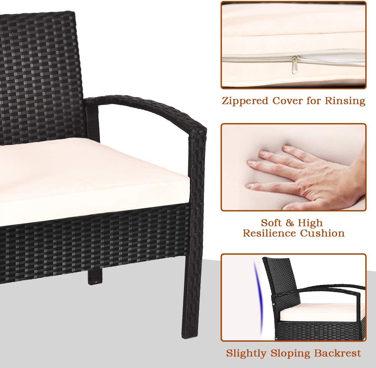 We’ve put this outdoor set to the test across different weather scenarios, and it impresses with its durability and resilience. The hand-woven PE rattan combined with a powder-coated steel frame ensures the furniture remains sturdy and crack-resistant, even after exposure to sun, rain, and wind. Protective non-slip pads have kept the set stable on various surfaces without scratching or slipping. The waterproof cushions filled with high resilience sponge are a real plus-they quickly repel water during unexpected showers and dry fast, preventing mold or mildew buildup. Plus, the cushion covers feature invisible zippers that make removal and cleaning a breeze, which is perfect for messy outdoor days.