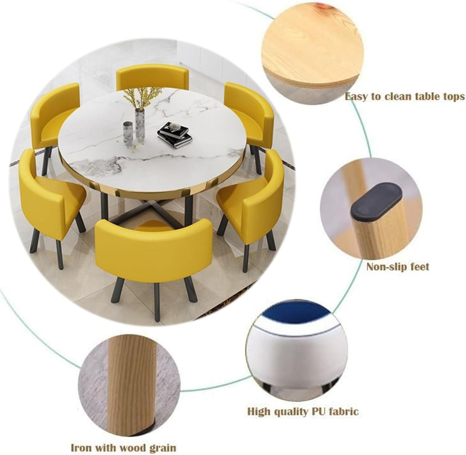 Having lived around the Round Dining Table Set,7-Piece Set with 6 Dining Pu Leather Chairs for Home,Kitchen,Resturant,Pub,Living room,E,120Cmx120Cmx75Cm, you notice it quiets into the background over time, more a place where things happen than an object that demands attention. As the room is used in daily routines, chairs are nudged aside, plates are set down and the surface gathers small marks that map ordinary days.Comfort changes with habit — cushions soften to the shapes of the people who use them and the set finds its spots in regular household rhythms. And, after a while, it stays.