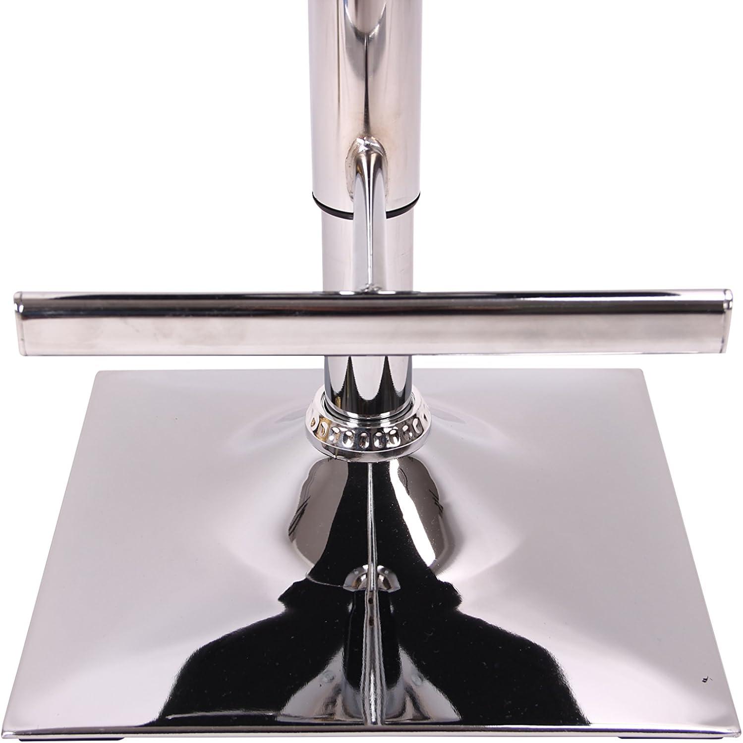 The chrome disk base measures just under 15″ across, so the stool keeps a compact footprint and generally clears neighboring furniture when spaced with a hand’s width between seats. The built-in footrest and swivel motion, though, create a slightly larger functional radius than the base alone; in tighter arrangements the footrest can catch against adjacent chair legs or lower shelves when the seat is rotated. over short periods of use the upholstery and seams tend to be smoothed by hands or an occupant’s movement, and the cushion thickness reveals itself in how close the knees approach the underside of a counter as the seat height is changed.