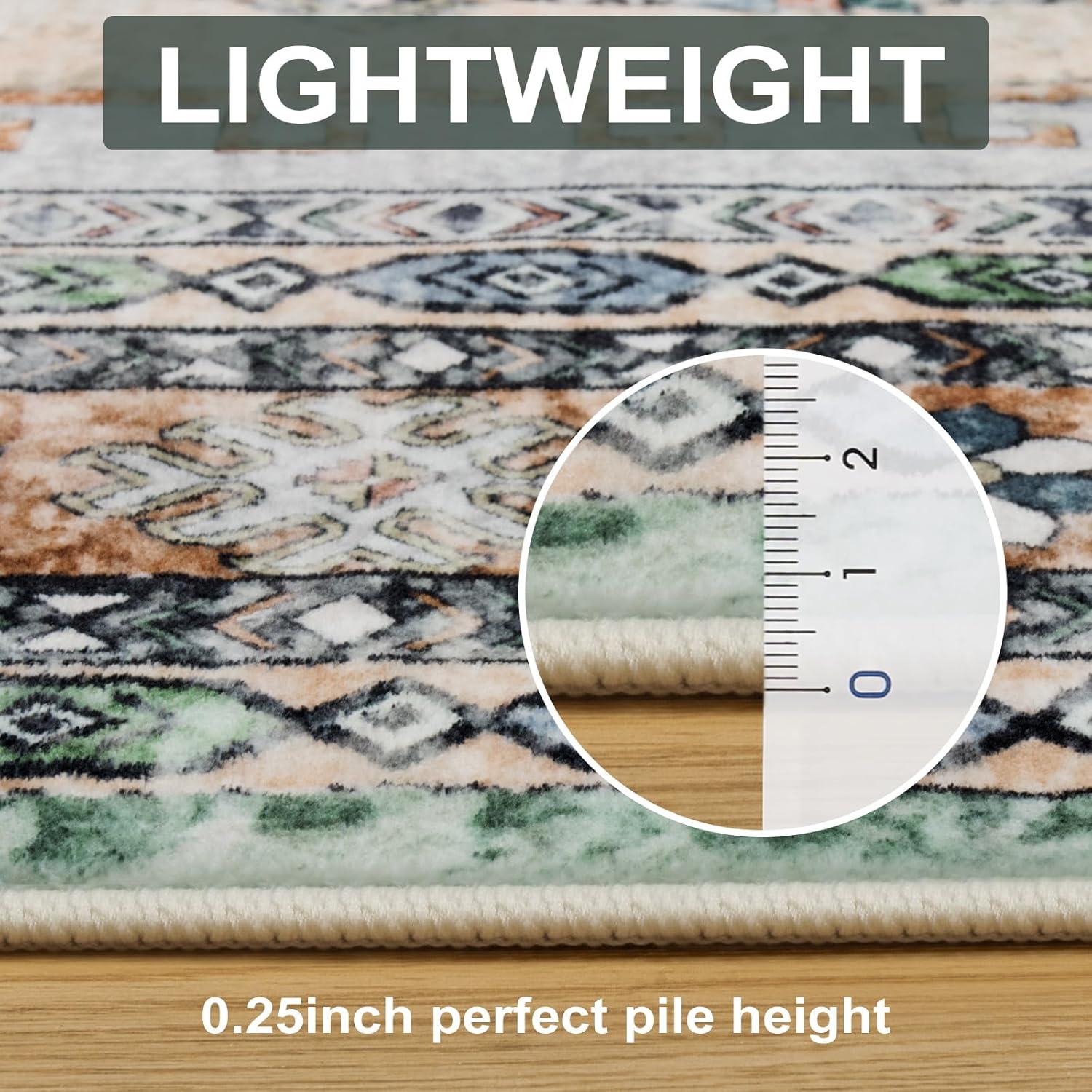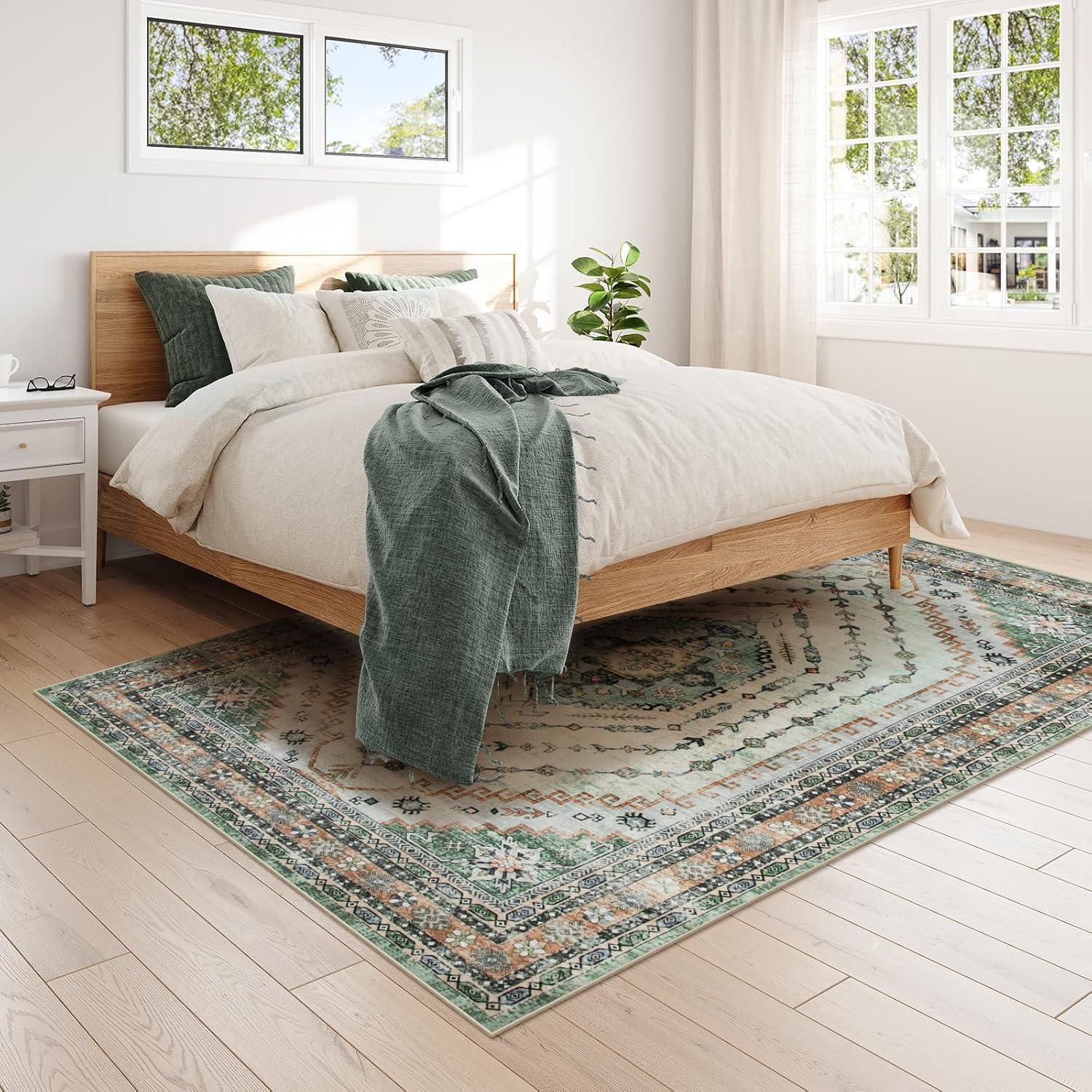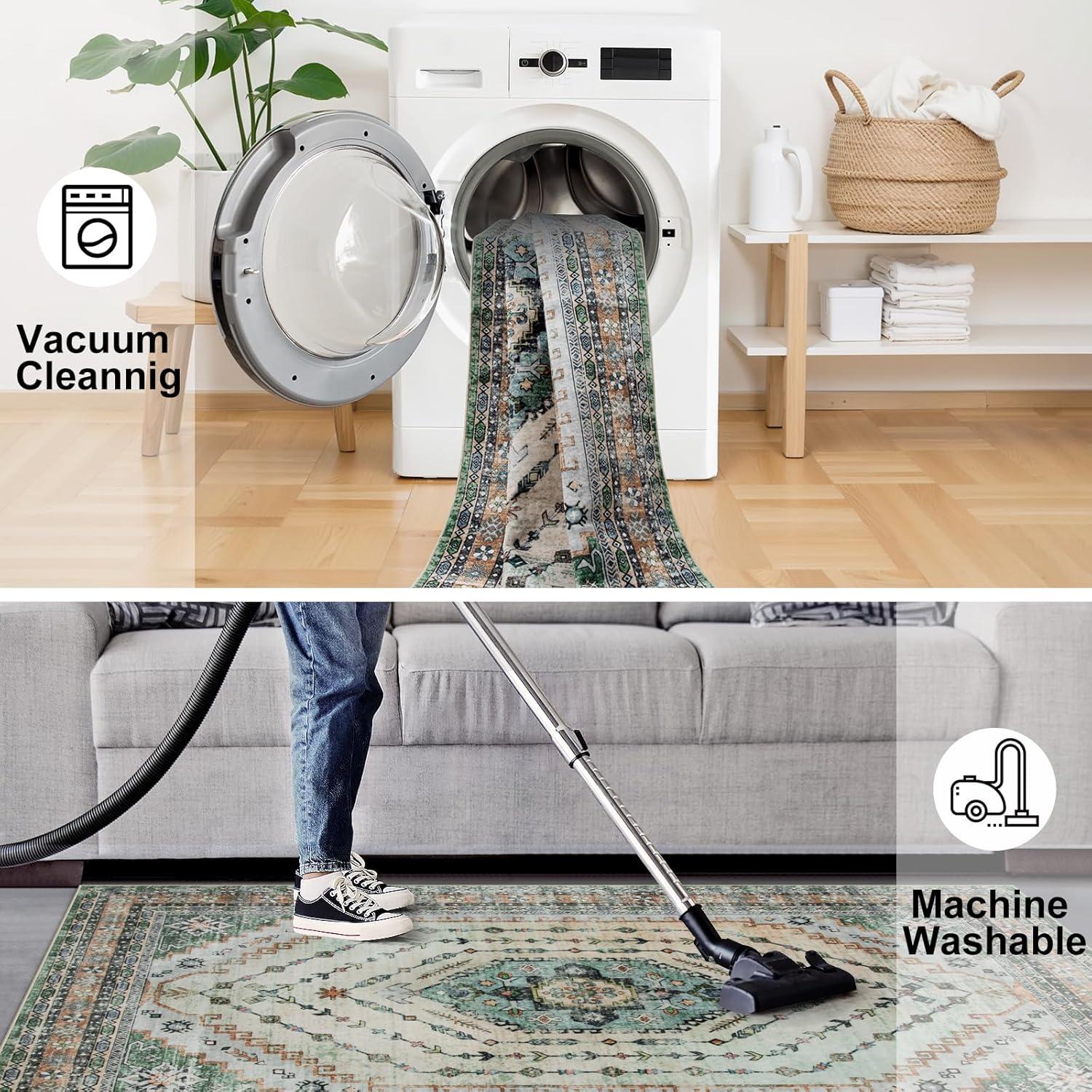 You notice, over time, how the Seavish Machine Washable area Rug 8×10, Vintage Boho Green Area Rug for Living room Non Slip, Soft Large Rugs for Bedroom No Shedding, Distressed Oriental Neutral Rug for Dining Room settles into the rhythm of the room rather than announcing itself. As the room is used—morning coffee, bare feet at night, chairs moved for meals—it yields a soft, quiet underfoot comfort and a sense of habitual presence. You see where traffic flattens the pile, where the distressed surface smooths and keeps its pattern, and how small spills and cleanings simply fold into its everyday look in daily routines. In regular household rhythms it stays.