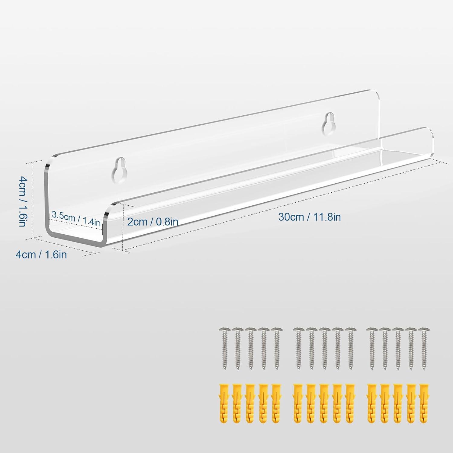 we found these clear acrylic shelves to be impressively sturdy, comfortably supporting up to 5 pounds each without any signs of bending or instability. Their lightweight yet durable design means we can confidently mount them in different rooms without worrying about wall damage, provided the surface is appropriate and the included screws are used correctly. Whether installed in the bathroom, bedroom, kitchen, or living room, the shelves maintain a secure hold and offer a neat, floating appearance that blends seamlessly with various décor styles.