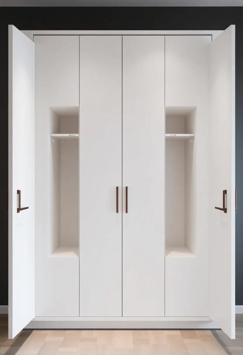 Curved ‌Seamless ⁣Doors⁢ with⁤ Integrated Handles ​Creating a ‌Flowing⁤ Silhouette in a Modern‌ Dressing Room
