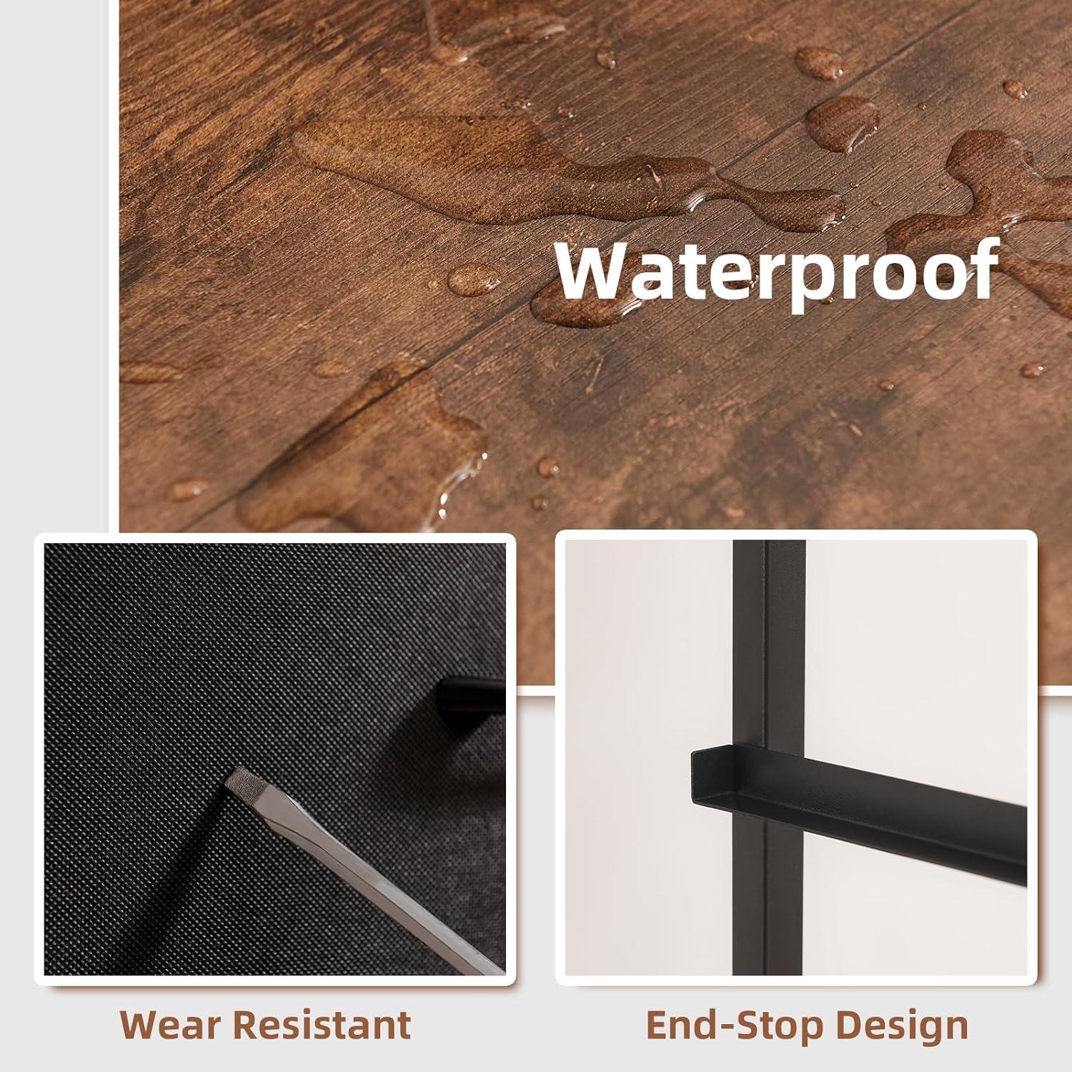 You’ll first see the contrast between the black frame and the rustic brown top change as the room light shifts. In luminous, north-facing daylight the brown reads warmer and the subtle wood grain steps forward; the black stays visually receded, so the top looks like the focal plane while the frame becomes a backdrop. As you move around the piece or change the angle of a lamp, highlights catch the top’s surface and reveal small variations in tone that aren’t obvious from a single, straight-on glance.