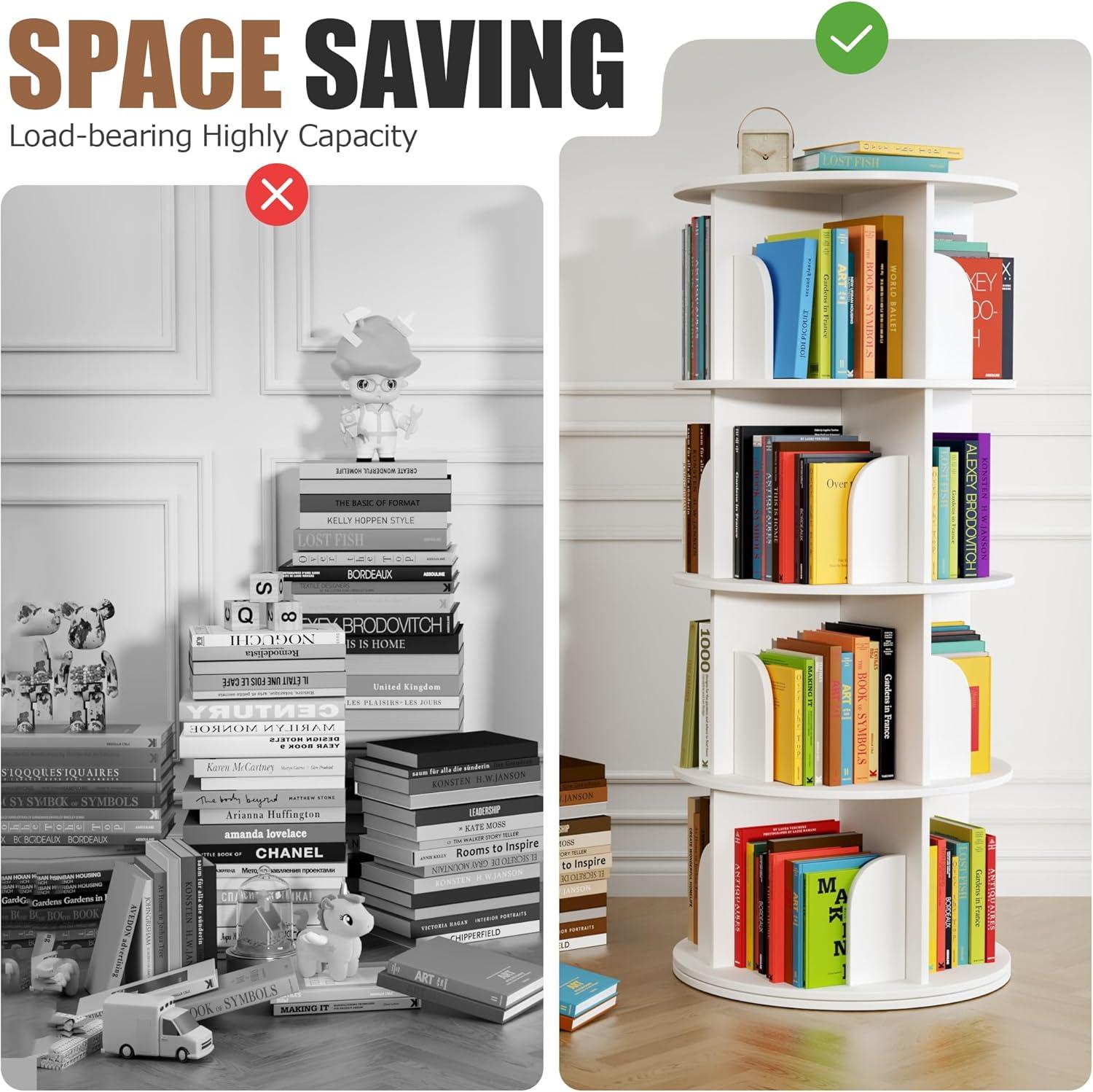 Space-Saving 4-Tier Rotating Bookshelf: Assembly and Storage Insights