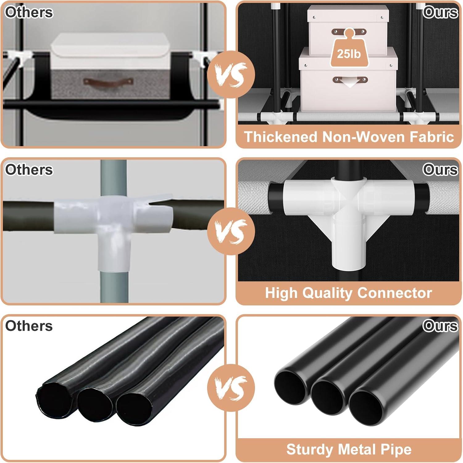When it comes to durability, the frame impresses at first glance thanks to its construction from 0.6-inch diameter metal tubes paired with reinforced plastic connectors. This combination aims to provide a sturdy skeleton capable of supporting a significant load.Specifically, the hanging rods can hold up to 33 lbs each, while the shelves support around 15 lbs apiece. Many of us found the closet reliable for everyday use,with a solid feel that instills confidence in its ability to maintain structure under typical clothing storage needs. The metal rods and connectors lock firmly in place when assembled correctly, which is critical for ensuring long-term stability.