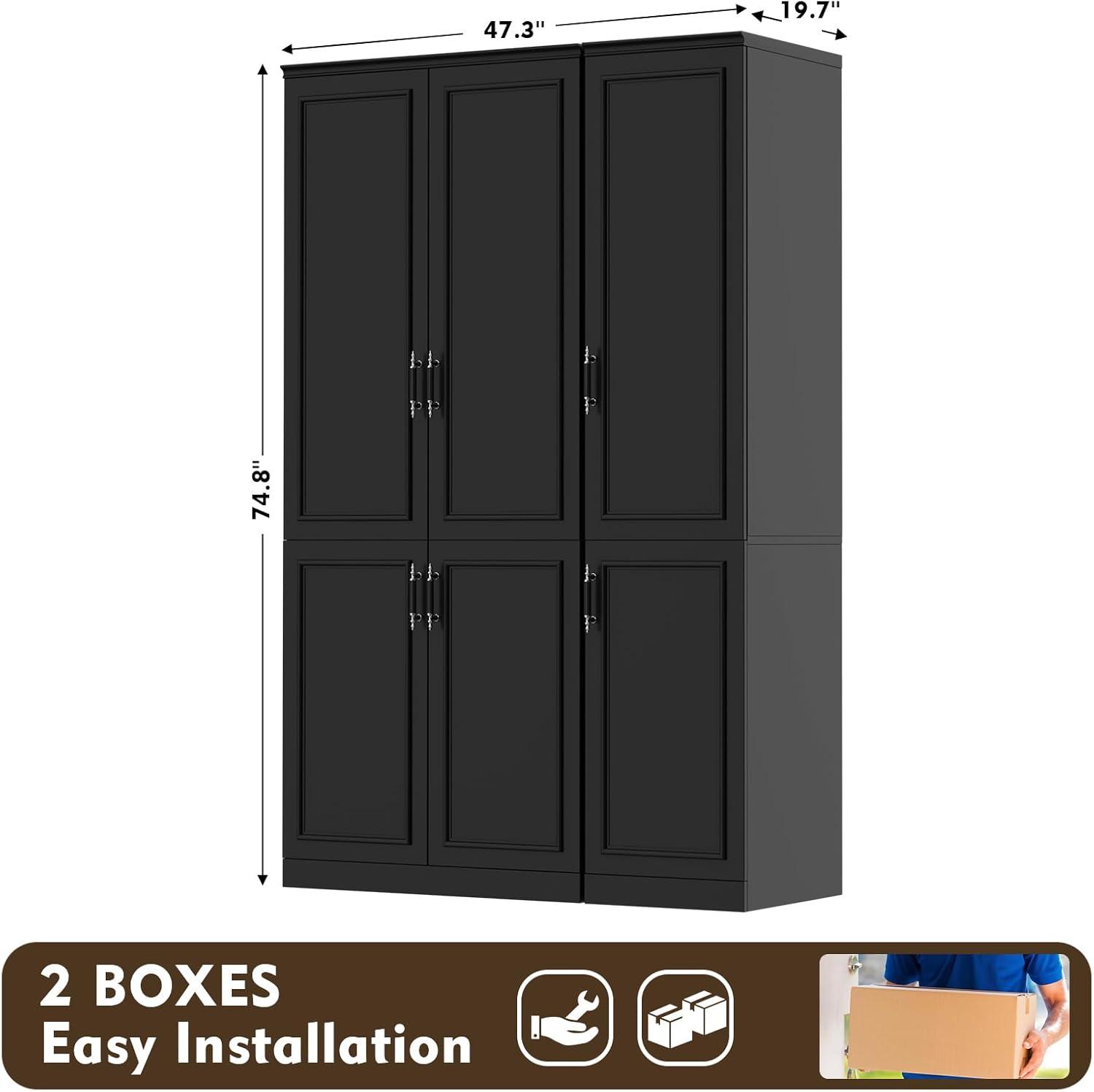 We appreciate how this wardrobe blends modern aesthetics with practical storage solutions, making it an elegant addition to any bedroom. Its sleek black finish and minimalist style bring a contemporary edge, while the upgraded handles add a subtle touch of sophistication. The design thoughtfully incorporates a metal hanging rod perfect for coats and suits, multiple shelves for folded clothes and linens, and spacious drawers tailored for smaller items like socks and underwear. Additionally, the side-mounted metal hooks offer convenient storage for scarves and bags, helping us keep essentials neatly organized and easily accessible.