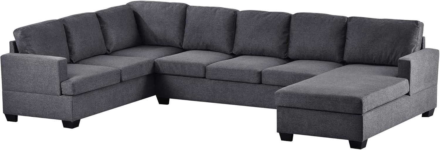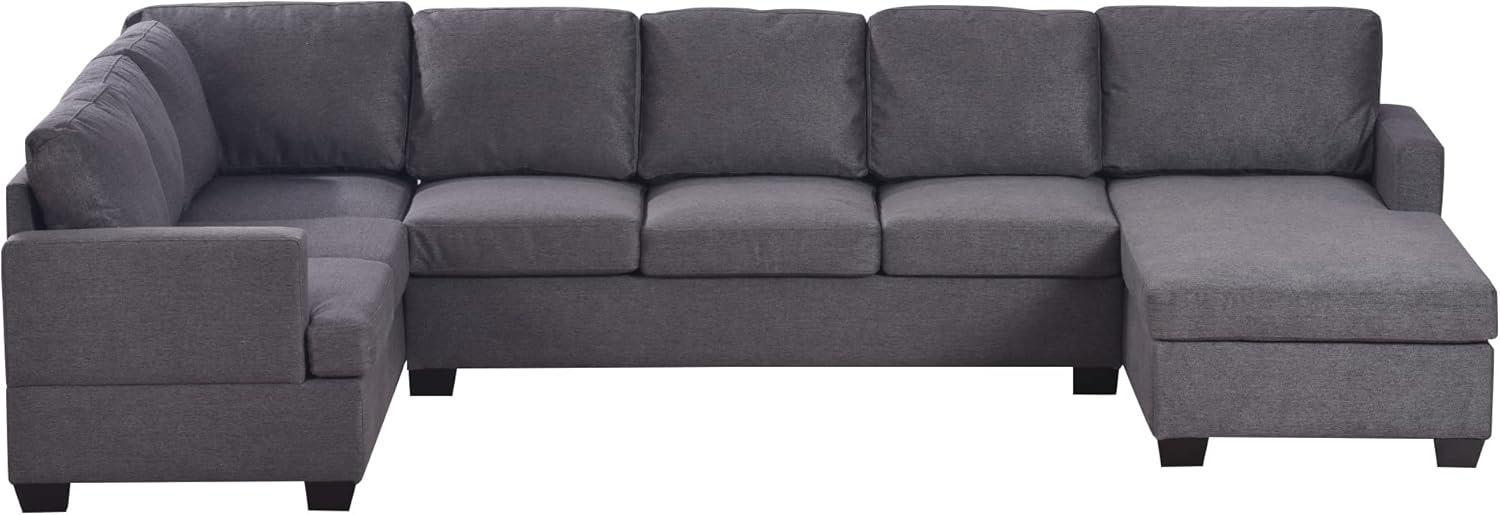 When placing the sofa in our living room, its U-shaped modular design offers an ideal layout for both spacious comfort and social gatherings. The wide chaise lounge becomes the perfect spot to relax, read, or nap, while the sloping backrests with supportive pillows enhance our overall lounging experience. Thanks to the solid wood legs and sturdy frame, the sofa holds up impressively under daily use, accommodating up to six people without crowding. Its space-grey fabric effortlessly blends with various decor styles, making it a versatile centerpiece for modern and cozy environments alike.