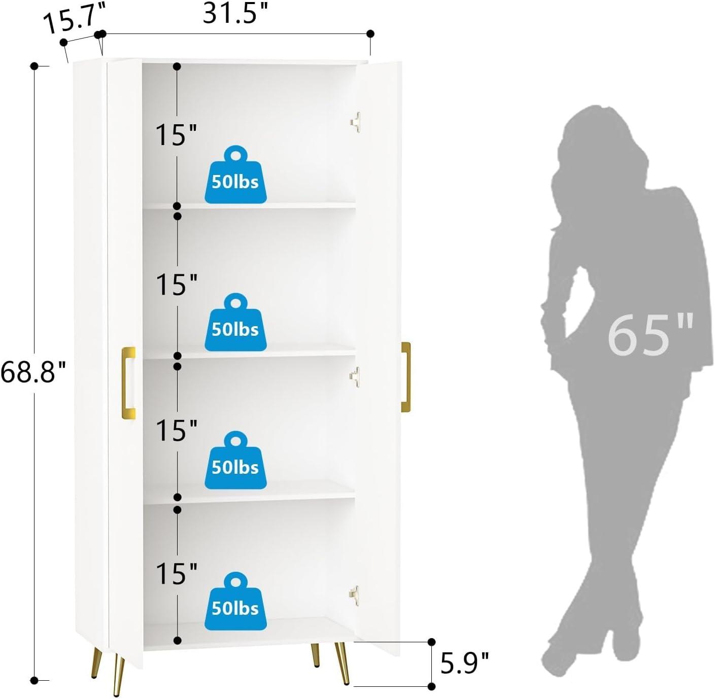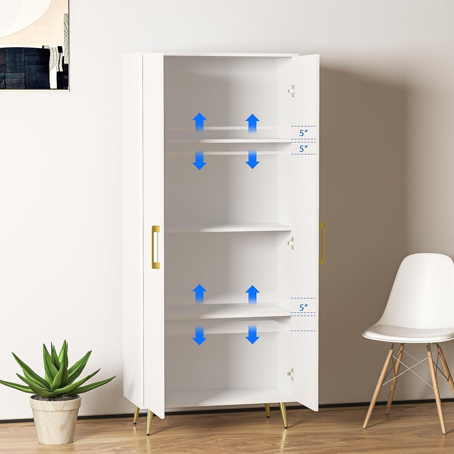 After thoroughly reviewing the cabinet, we appreciate its spacious and elegant design that fits seamlessly into various rooms-from kitchens to laundry areas and bedrooms. The adjustable shelves offer much-needed flexibility, allowing you to store anything from linens to pantry essentials with ease. Assembly is straightforward with clear instructions and labeled parts, though handling the doors might require an extra pair of hands.The white finish paired with gold handles and legs adds a touch of sophistication without overwhelming your existing décor.Plus, safety features like anti-tipping devices ensure peace of mind in busy households.