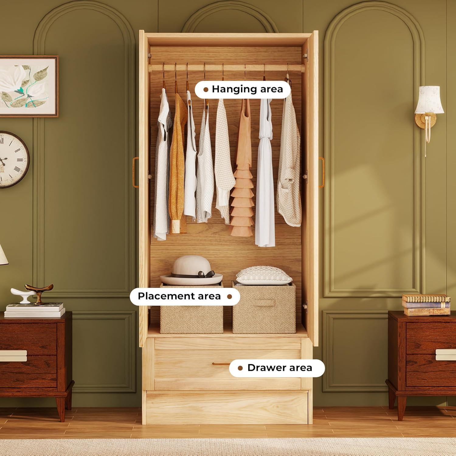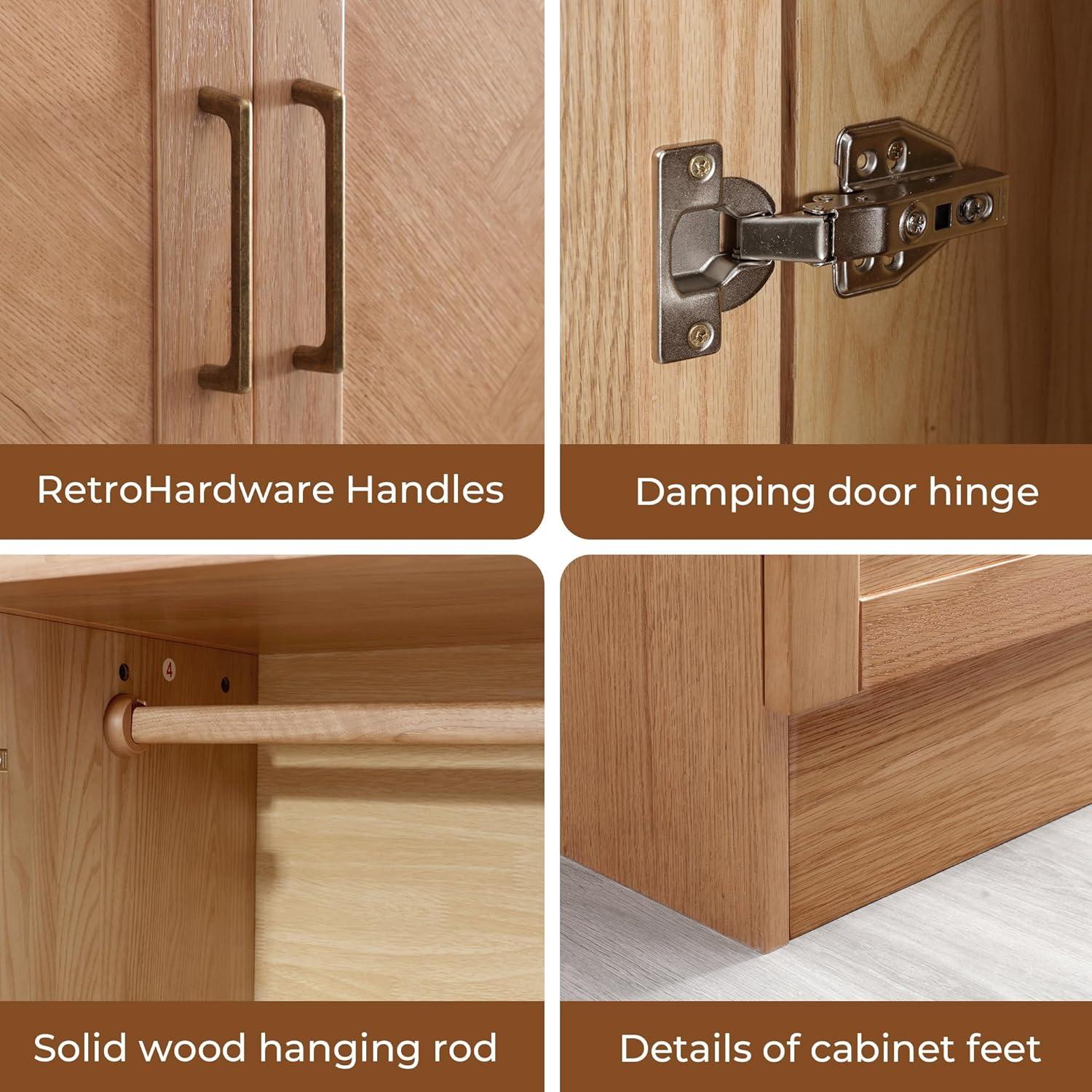 We found this wardrobe to be a superb option for anyone looking to combine functionality with a touch of classic American style. Its well-thought-out compartments, including a hanging area ideal for wrinkle-free long garments and several shelves for folded shirts and pants, make organizing effortless. The inclusion of drawers perfect for smaller essentials like ties and underwear adds convenience while keeping everything dust-free.The sturdy damping hinges ensure smooth, silent door operation and prevent accidental pinching, a subtle but meaningful safety feature.
