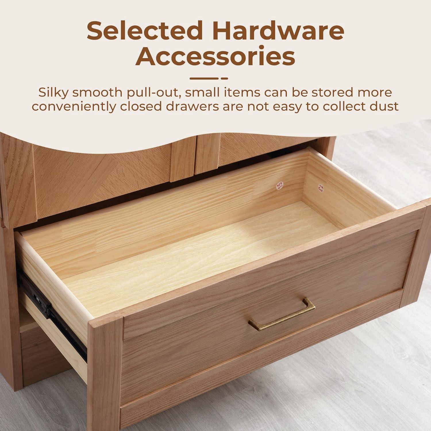 We were promptly impressed by the robustness and durability that the solid wood framing offers. The original wood color finish enhances its natural aesthetic, giving the piece an elegant, timeless appearance that complements a variety of decor styles. Each surface feels sturdy,and the careful attention to detail is evident-from the smooth,resistance-equipped door hinges to the precise joinery that ensures stability without any wobbling. These design elements not only contribute to the structural integrity but also protect users from injuries, such as pinched fingers, thanks to the thoughtful damping mechanisms on the doors.
