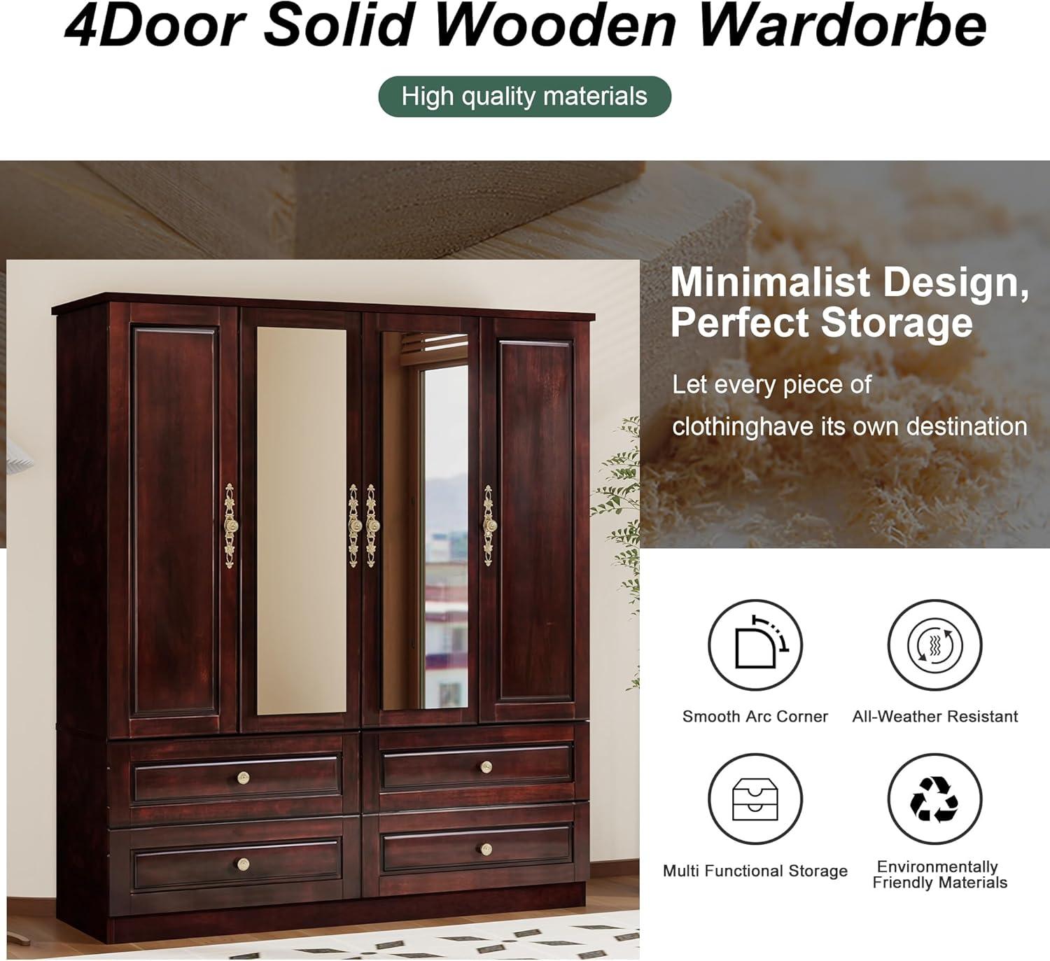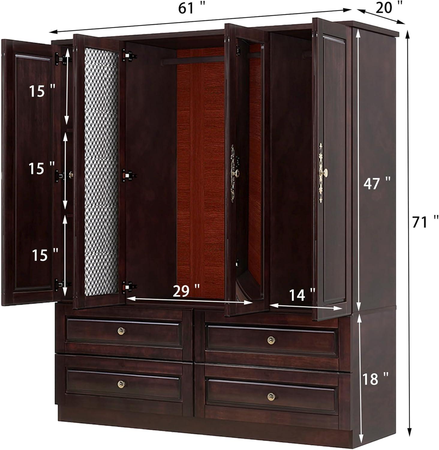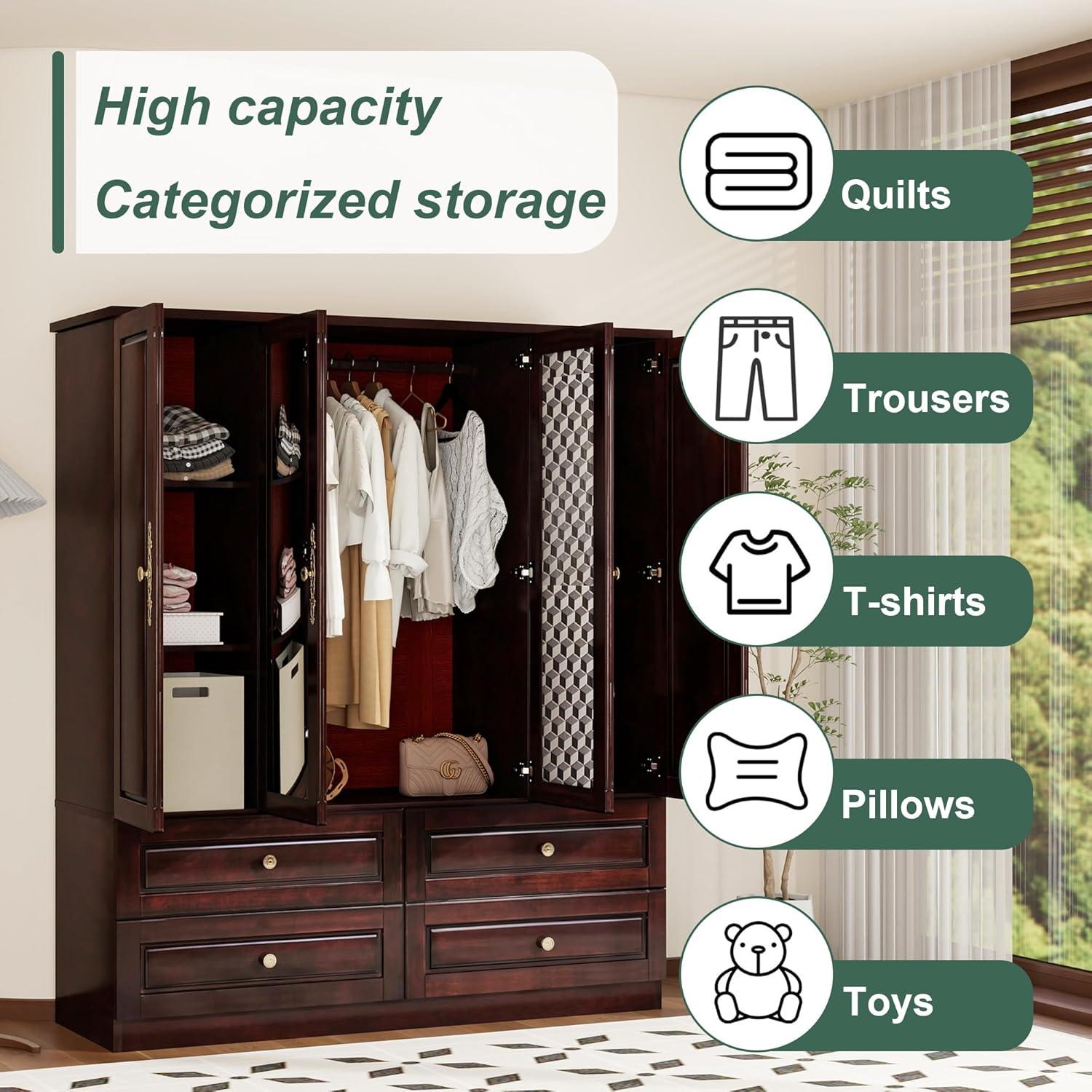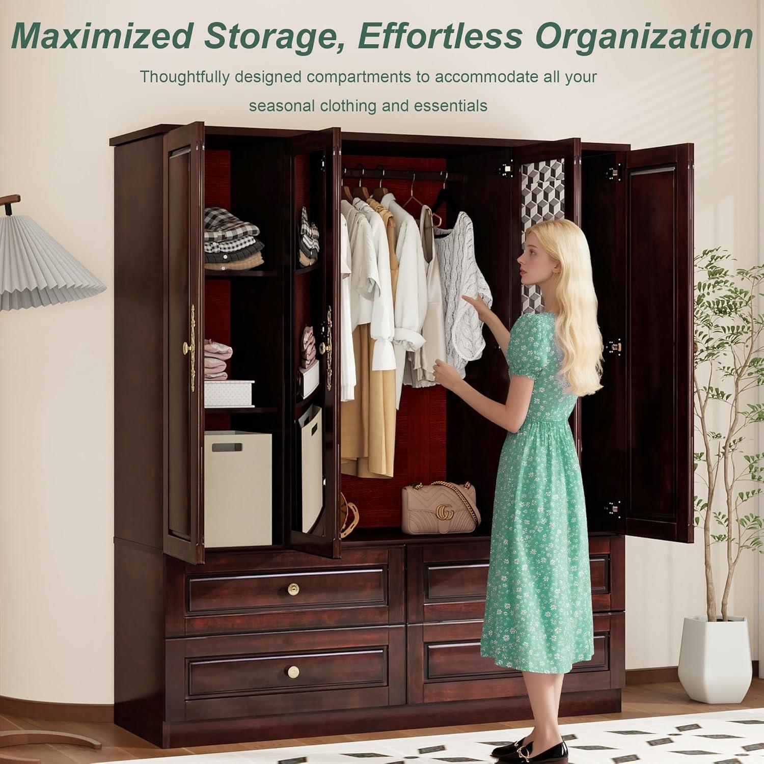 We recently had the chance to bring the Solid wood Armoire Wardrobe Closet into our bedroom, and after living with it for a while, we’re ready to share our thoughts. With its four doors, four drawers, built-in mirrors, shelves, and a hanging rod, this brownish-black wardrobe promises ample storage and timeless style. From unpacking and assembly to organizing our clothes, we experienced firsthand how this solid wood armoire blends practicality with classic design. In this review, we’ll walk you through its standout features, the challenges we faced, and whether it truly lives up to the promise of a spacious, durable bedroom companion.