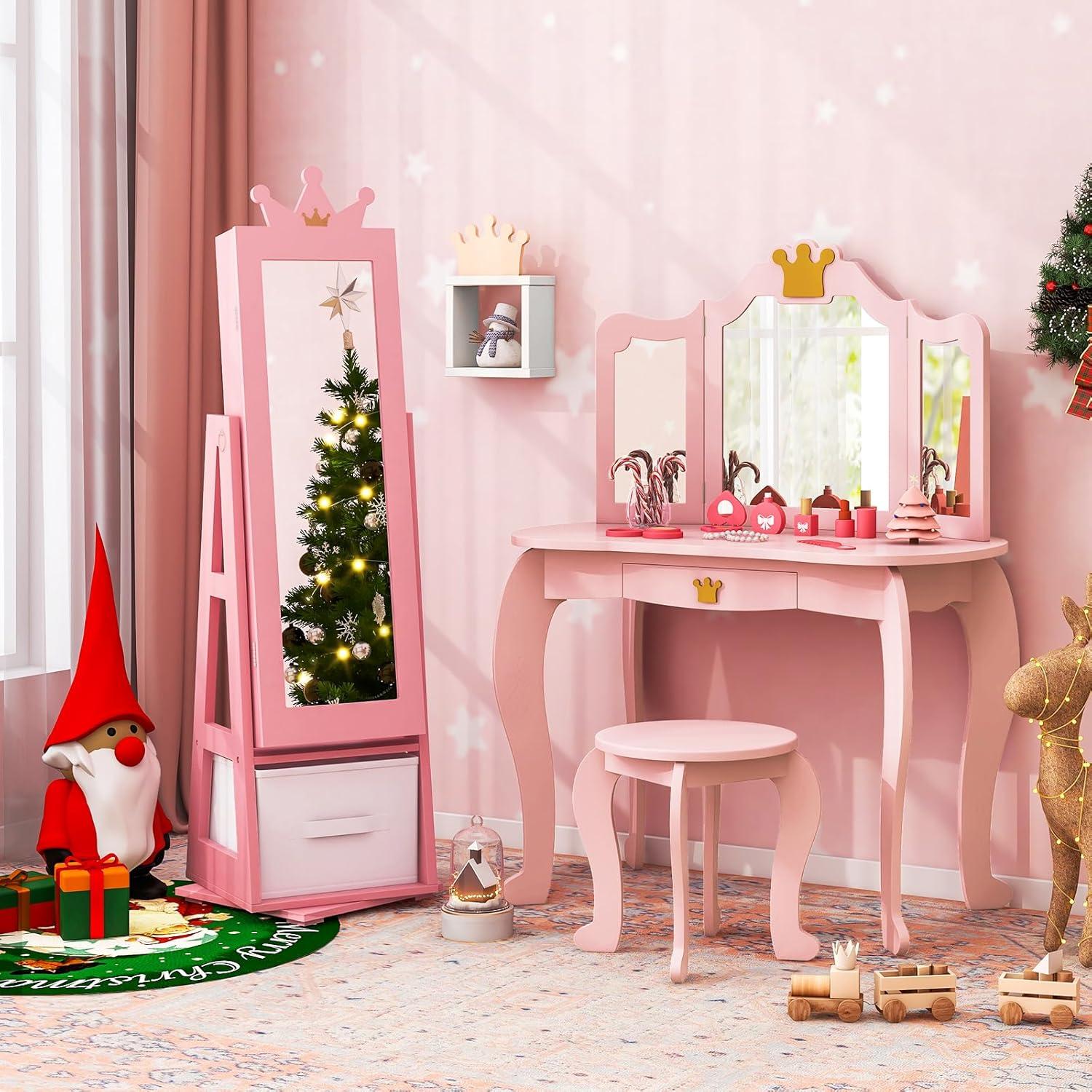 The design brilliantly​ balances playful aesthetics with ⁤practical features that cater ​perfectly to young users. Its ⁣ 360° swivel base allows children to effortlessly rotate the mirror to ⁣the ideal angle, encouraging ‍independence and ease when getting ready.‌ The⁤ full-length mirror is framed in vibrant pink, instantly making it a charming centerpiece in any child’s room. Beyond looks,the vanity’s stable⁢ triangular wooden frame ensures‍ it stands firmly,while‍ the anti-toppling ⁢device creates peace of mind for ​parents⁢ by securing the unit safely to the ⁢wall. This thoughtful blend of safety ⁤and style ⁢truly sets it apart.