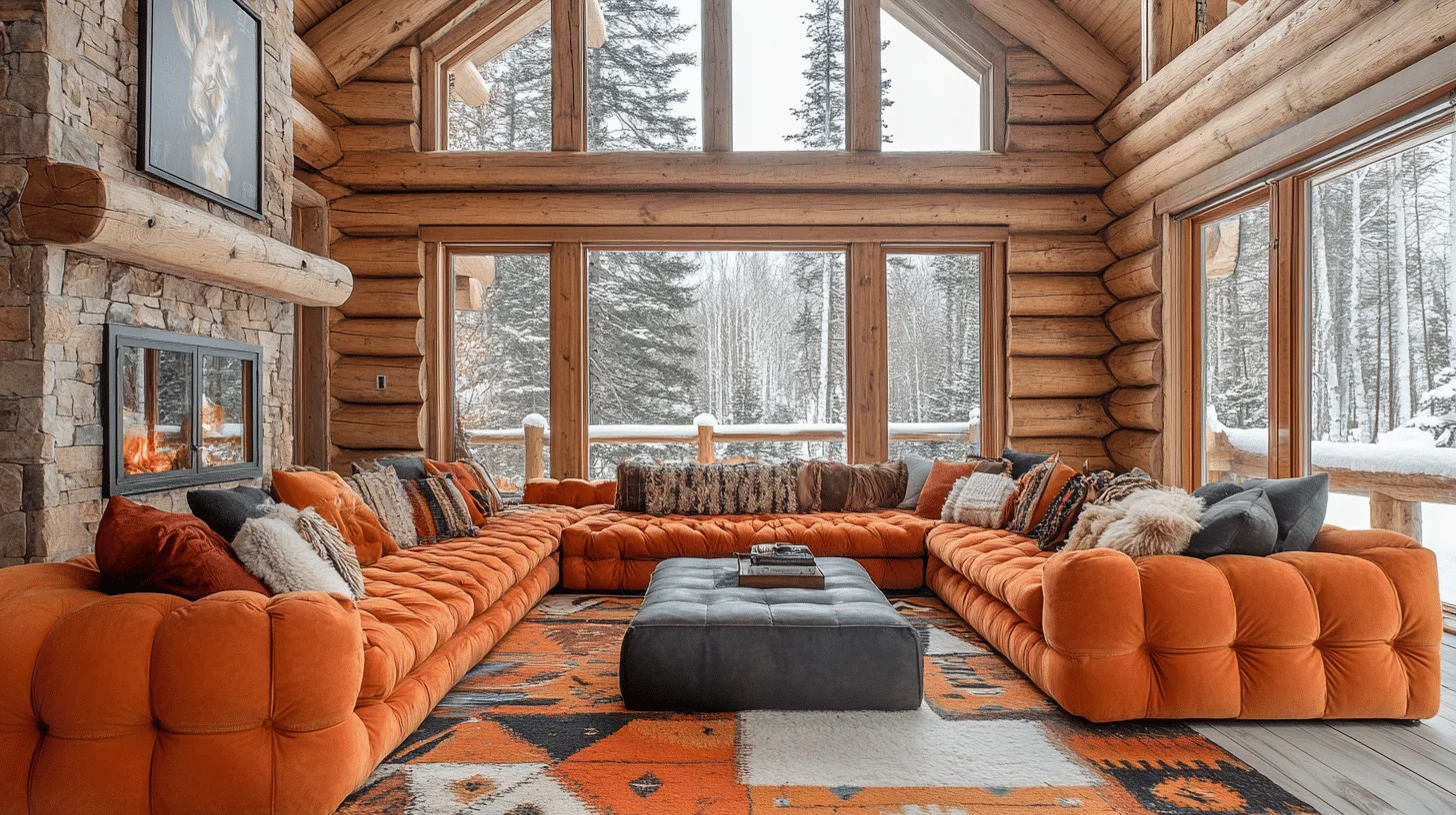 Achieve a contemporary yet cozy vibe by blending modern furnishings with rustic log features. Sleek, simple-lined furniture contrasts beautifully with exposed timber, while neutral tones punctuated by vibrant, affordable accessories bridge traditional and modern styles seamlessly.