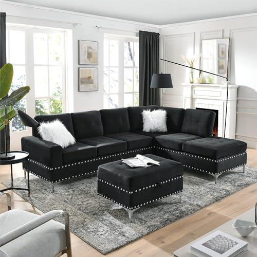 Stylish Black L-Shape Sofa with Storage Ottoman Perfect for Any Living Space
