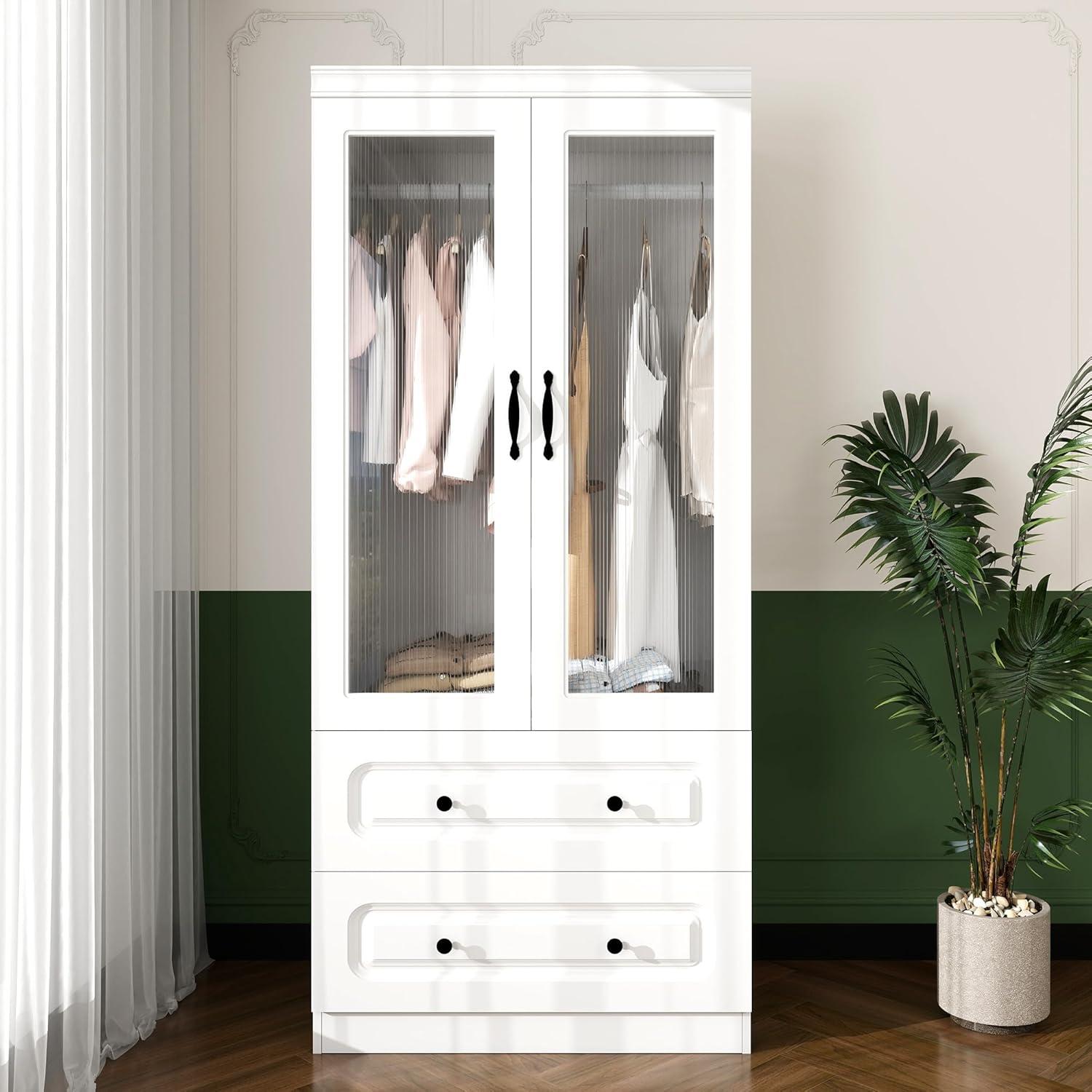 Stylish and Space-Saving White Armoire with Mirror and Drawers