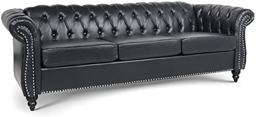 This exquisite 3-seater sofa combines classic design with modern comfort, making it a standout piece in any living room, bedroom, or office. Crafted from supple, high-quality leather, the sofa features deep button tufting and elegant nailhead trim that adds a touch of sophistication. The solid wood legs provide durability and can support a weight of up to 660 lbs. With thick cushions made from foam fillers, this sofa ensures you’re enveloped in comfort at the end of a long day, while the generous seating area promotes both relaxation and style.
