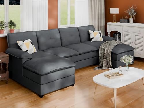 This U-shaped modular sofa sleeper is designed for easy assembly, allowing you to effortlessly put it together by following a straightforward instruction manual. It ships in three boxes, which may arrive separately, so a little patience is required. The deep seat depth of 22 inches ensures comfort for larger adults, while the breathable flannel fabric covering the soft back cushions enhances the overall sitting experience. High-density and elastic sponge cushioning ensures that lounging, sitting, or lying down is a delightful experience.