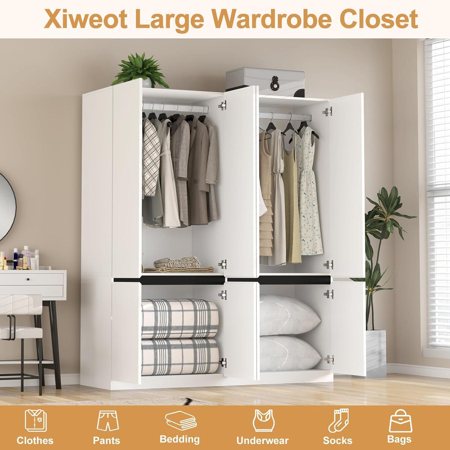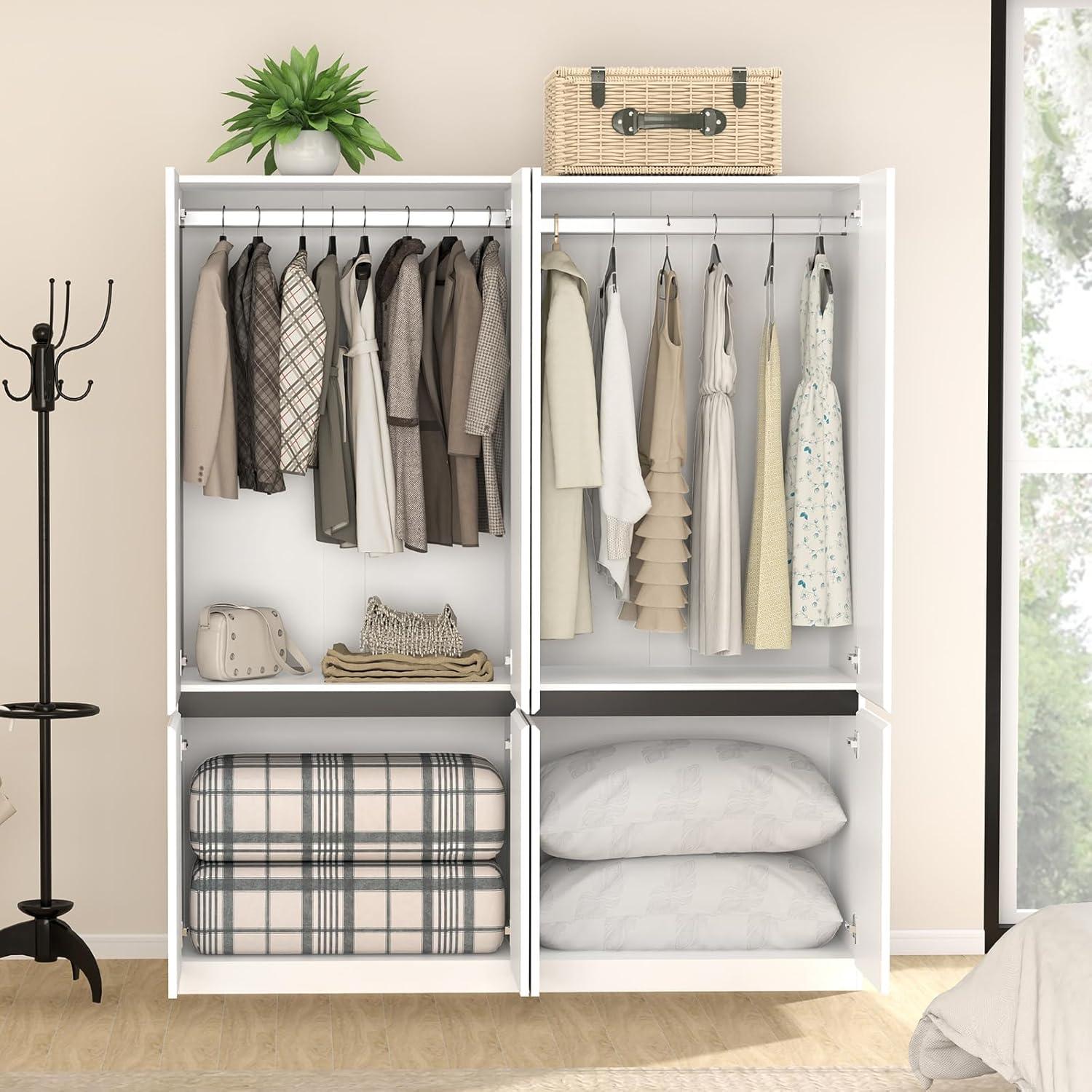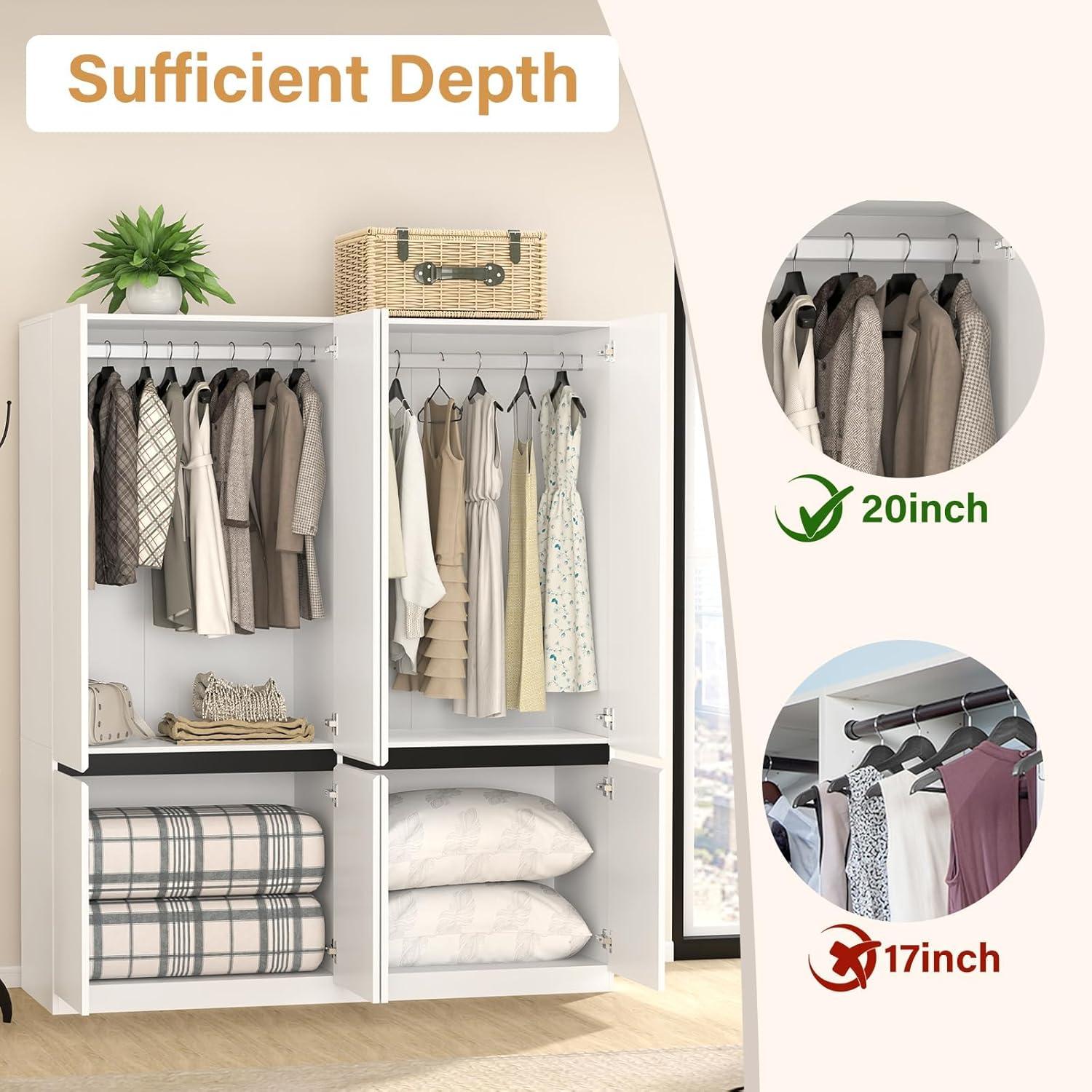 One of the standout features we immediately appreciated is the intelligently designed interior, which offers an extraordinary blend of hanging and shelving space. With two full-length hanging rods crafted from sturdy metal, this wardrobe easily accommodates longer garments such as dresses, coats, and suits, ensuring they stay wrinkle-free and well-organized. Adjacent to these rods, two large compartments provide generous room for folded clothes, bedding, or seasonal items. This dual-function layout not only maximizes storage but also brings order to our bedroom, making it simpler to access essentials without clutter.