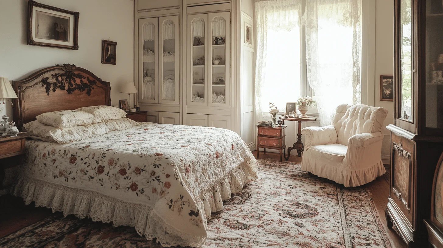 The storybook vintage aesthetic crafts spaces reminiscent of romantic tales, blending soft lighting, floral motifs, ruffles, and meaningful keepsakes. This style evokes the intimacy of old letters and treasured heirlooms, using layered textures and gentle hues to create a soulful, deeply personal environment.